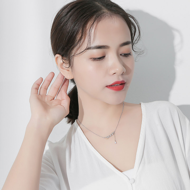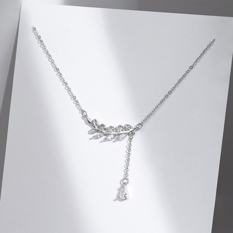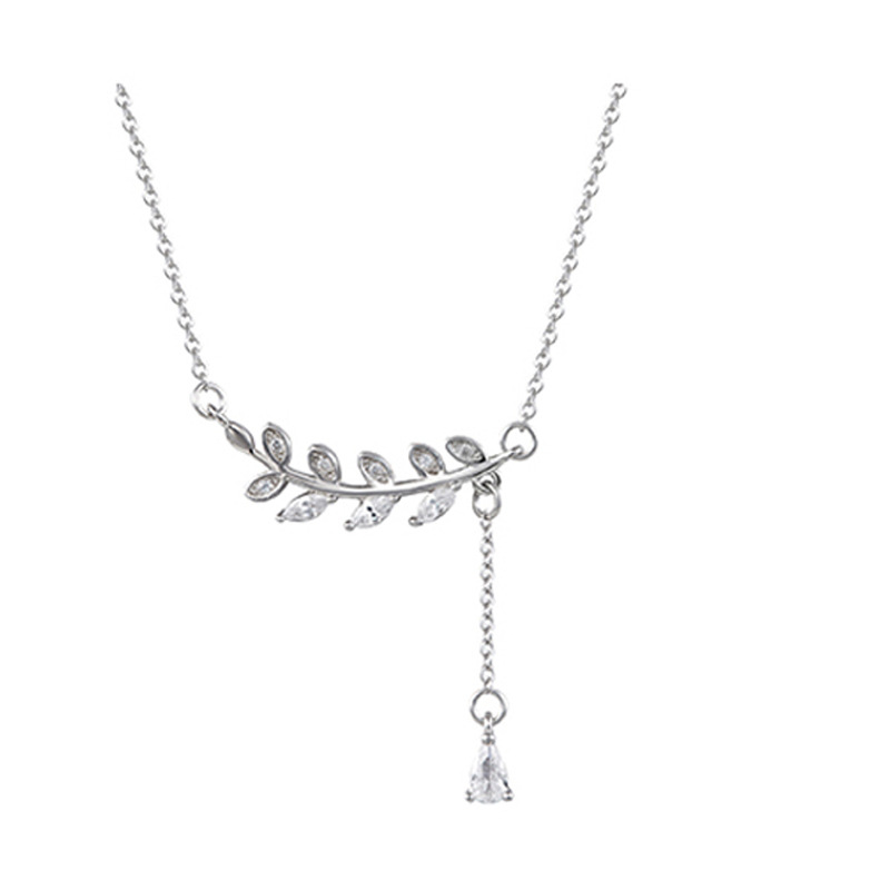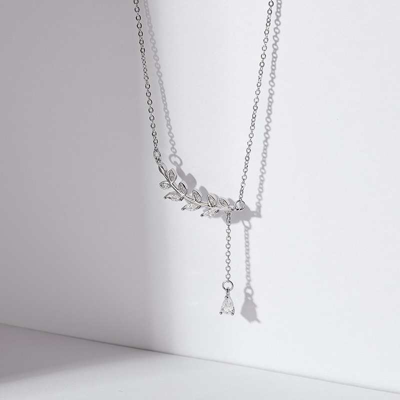 Forest Style Fresh Temperament Tassel Clavicle Necklace Female Korean Version Simple Gift For Girlfriend Lover Sparkling Diamond Leaf Necklace