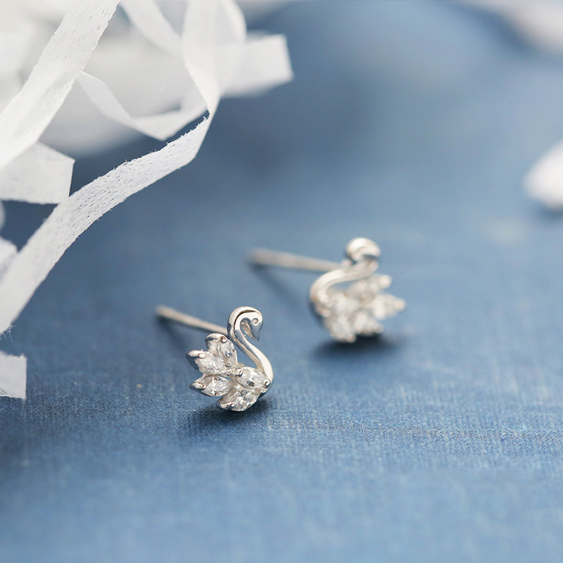 Small Fresh Swan Earrings Female Internet Celebrity Temperament Mini Korean Cute Personality Simple Creative Forest Girl Dating Gift