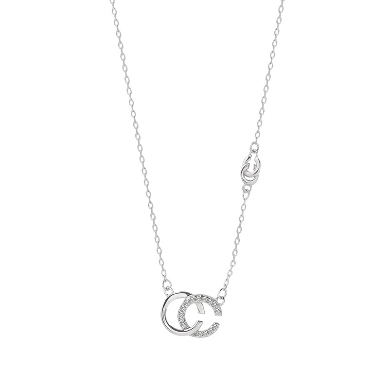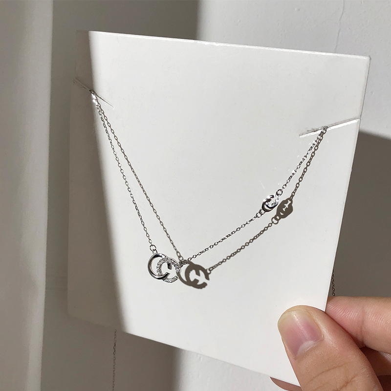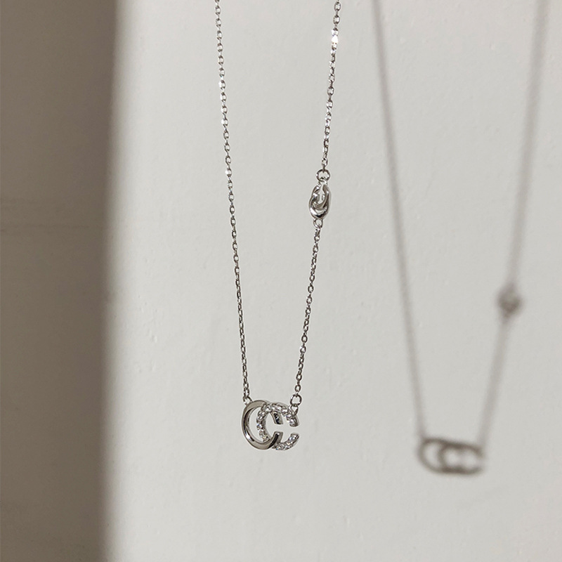 Letter Double CClavicle Necklace Cold Style Female Korean Version Student Gift Temperament Forest Style Diamond Small Fragrance Style Necklace Short