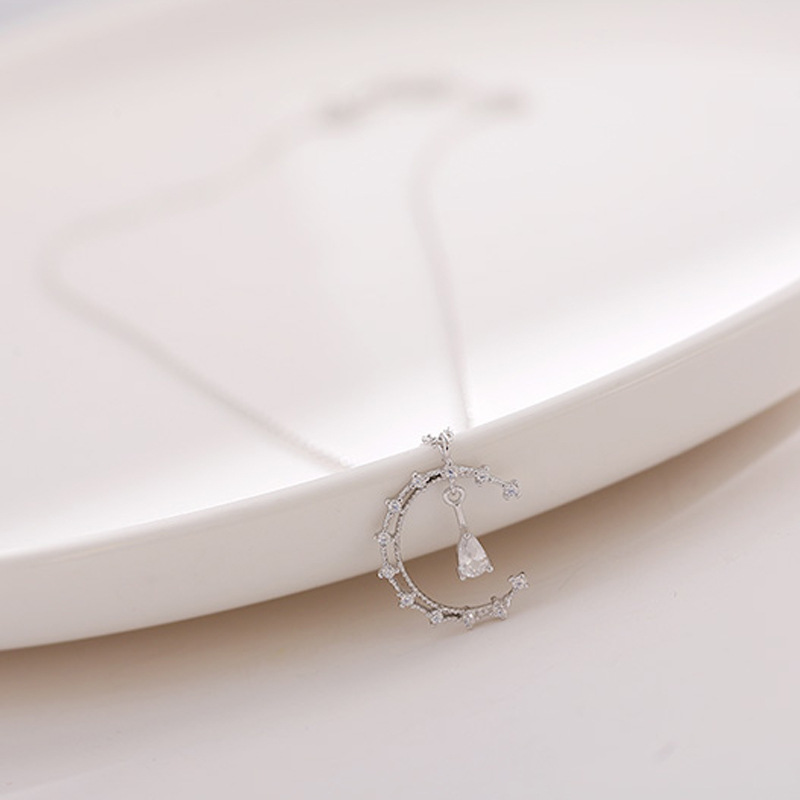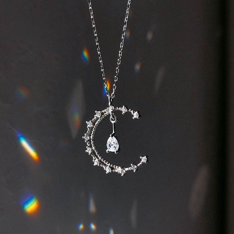 Diamond Hollow Water Drop Moon Necklace Inlaid With Zircon Clavicle Chain Korean Fashion Temperament Light Luxury Necklace Accessories Gift