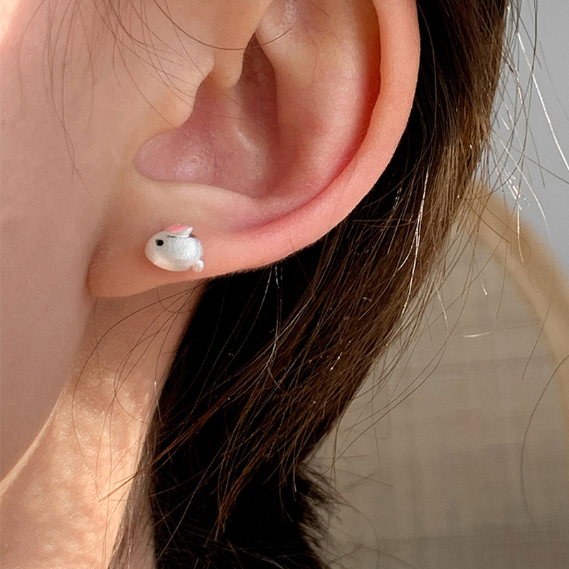 Pink Little White Rabbit Earrings For Women Korean Style Small Fresh Cute Girlish Heart Forest Style Student Year Of The Rat Mouse Animal Earrings