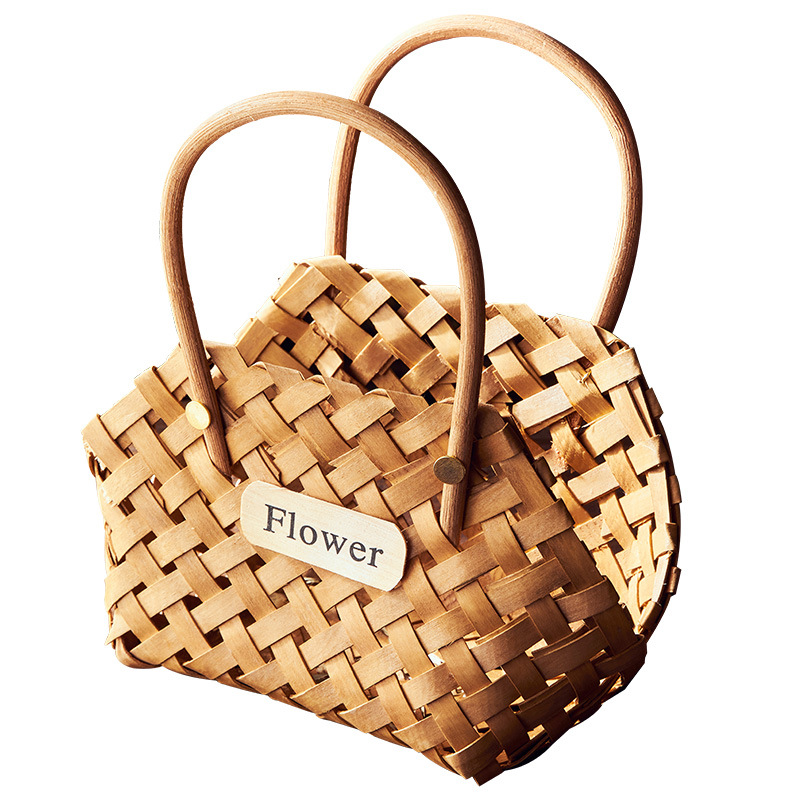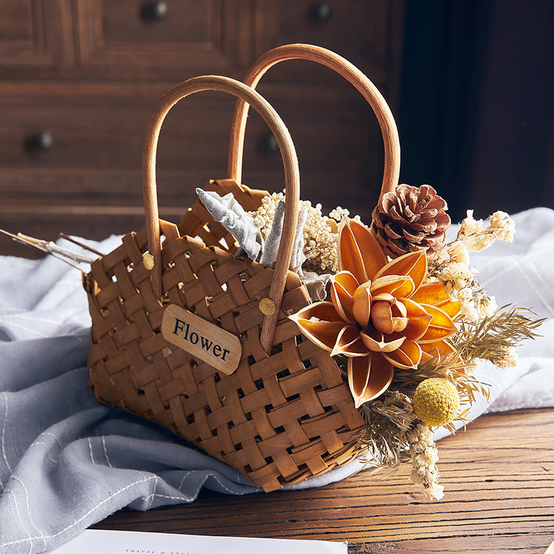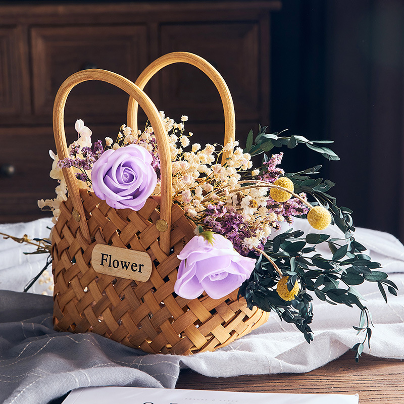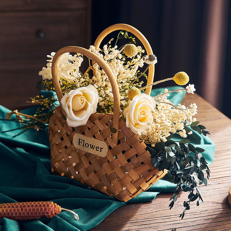 5 YA1 Pastoral Style Small Flower Basket Bamboo Basket Flower Arrangement Dried Flowers Artificial Flowers Picnic Handmade Rattan Woven Basket