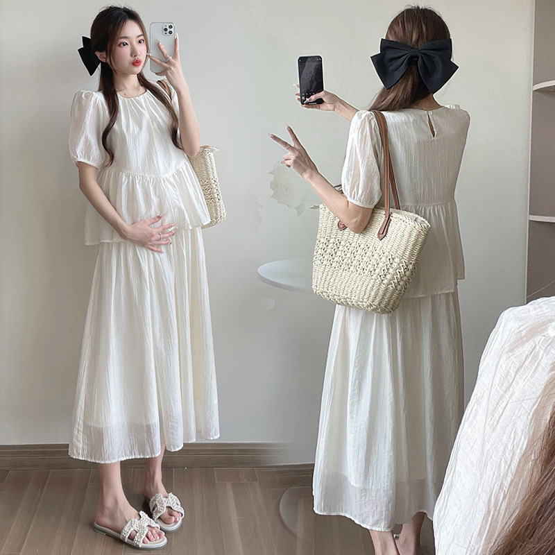 Maternity Dress Summer High-end Korean Style Sweet Temperament Loose Cover Pregnancy Belly Fake Two-piece Dress