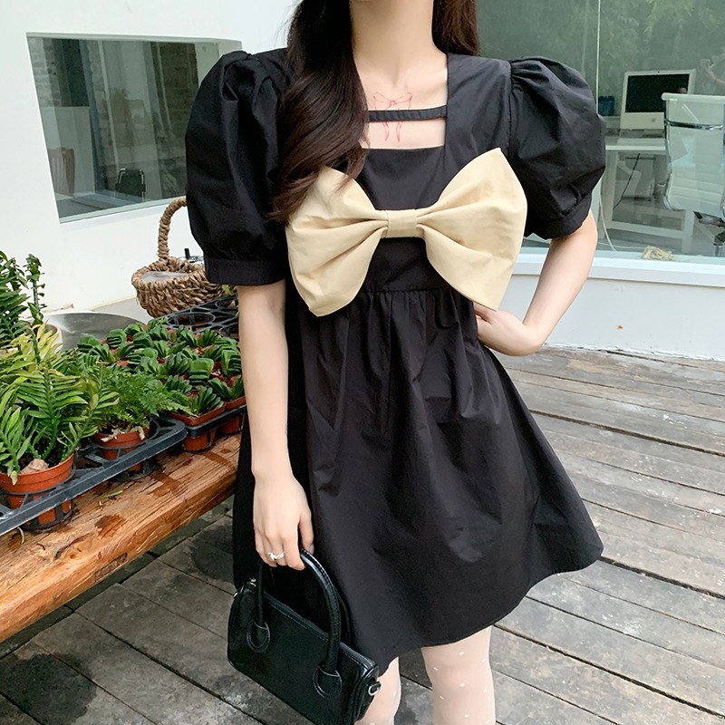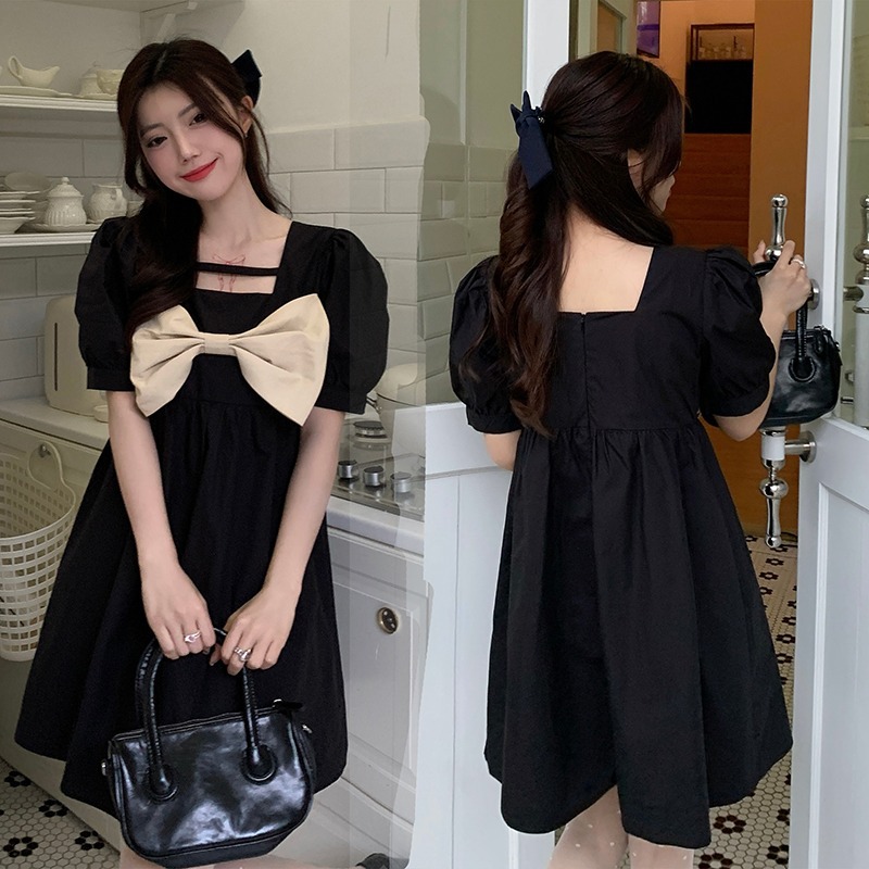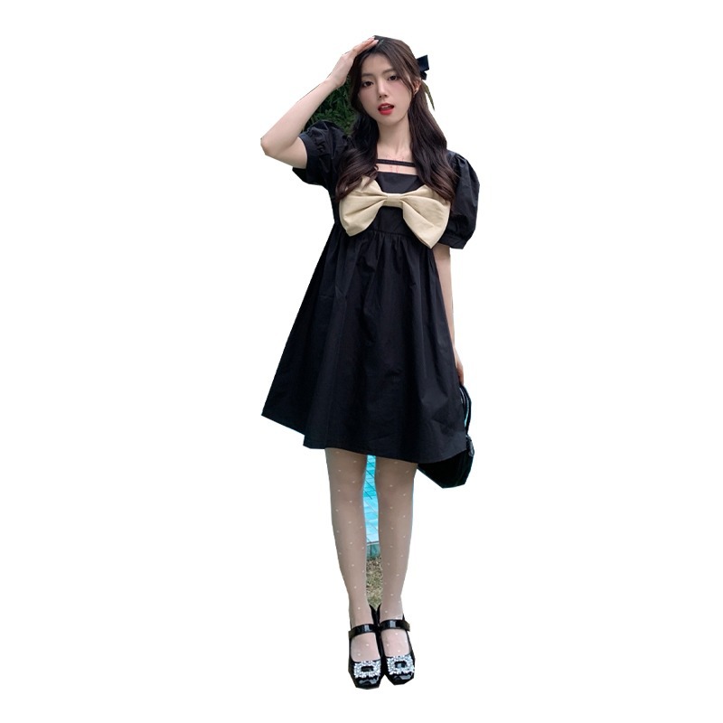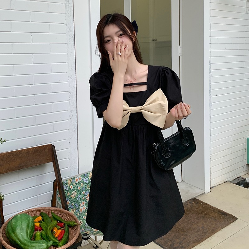 Internet Celebrity Pregnant Dress Summer Style Fashionable Square Neck Bow Mid-length Temperament Pregnant Dress