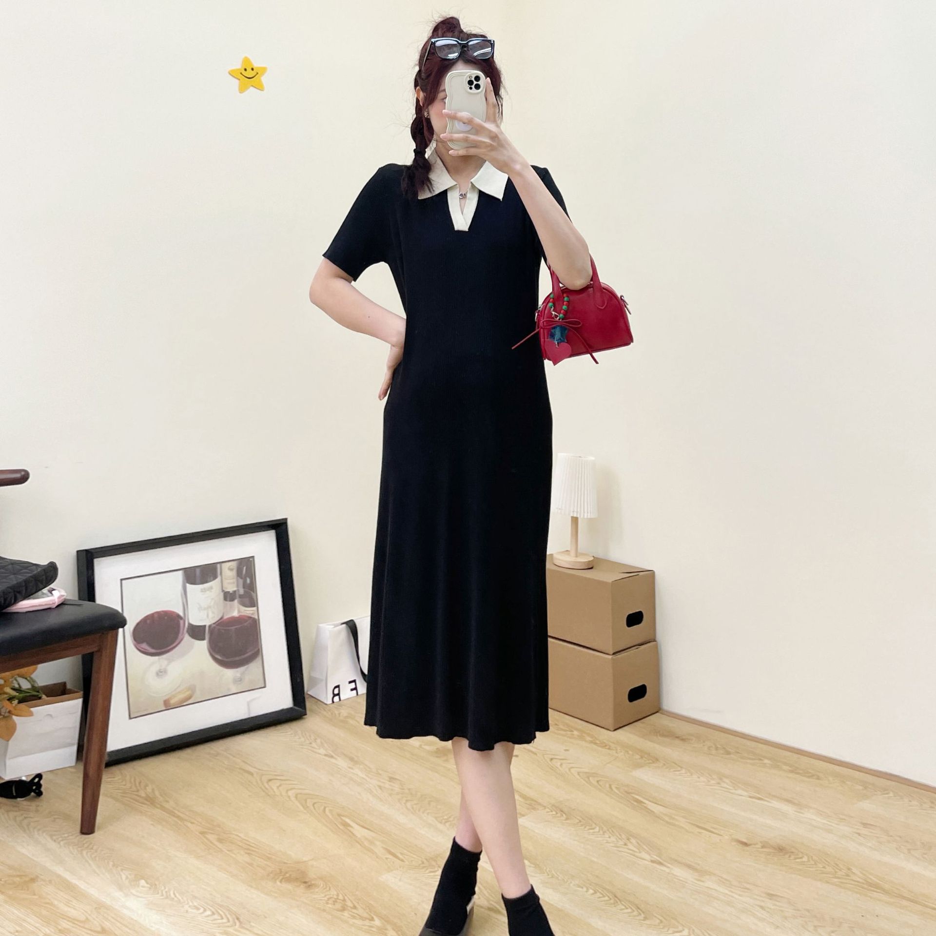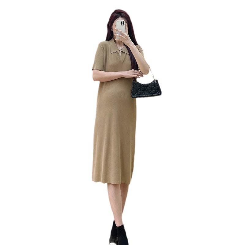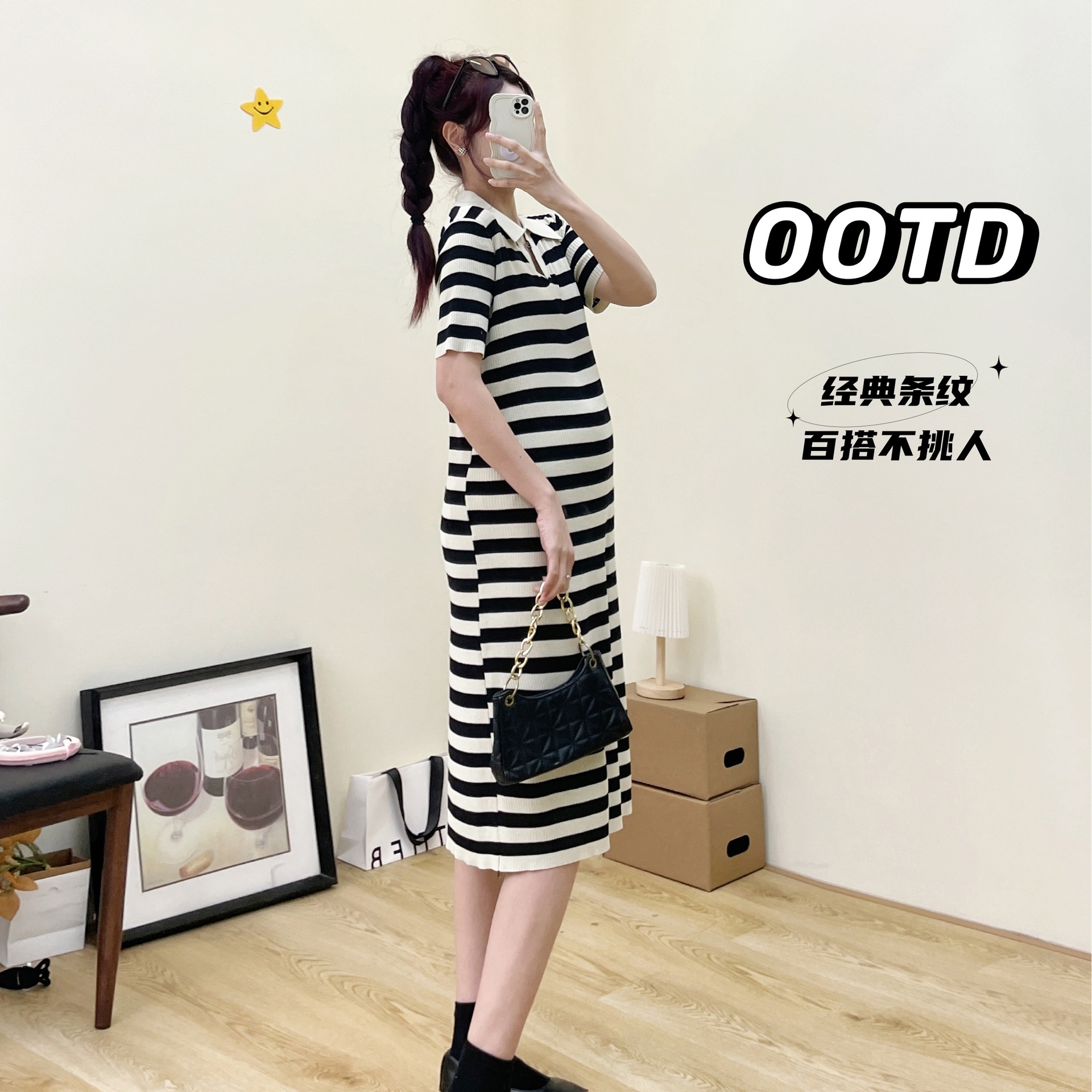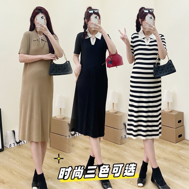 Xue Meifu Pregnant Women Dress Summer Korean Style Fashion Loose Casual Slim Striped Knitted Skirt