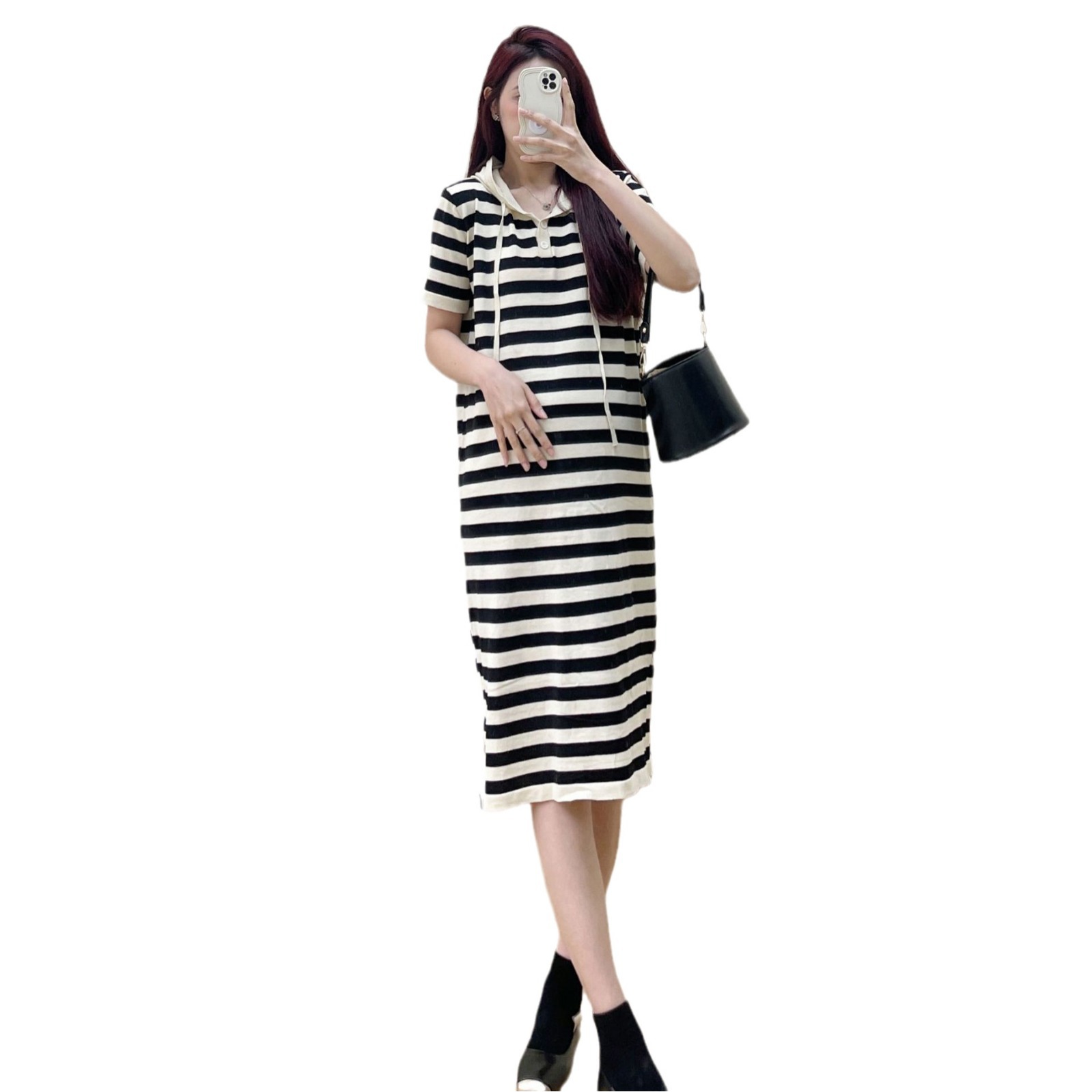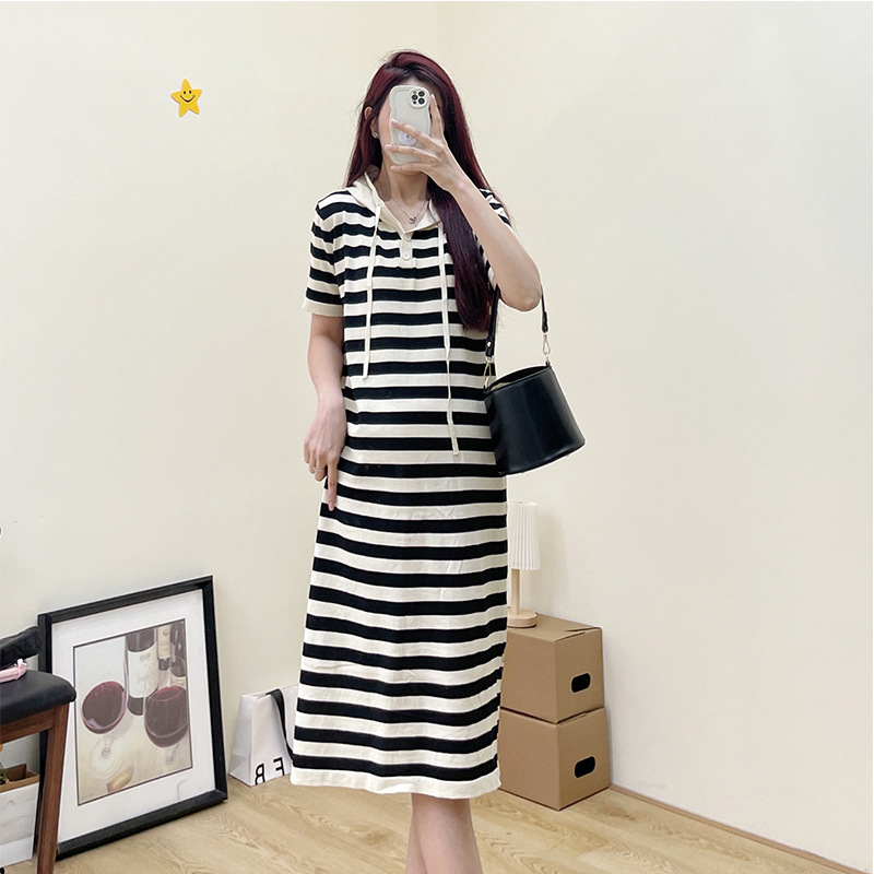 Xue Meifu Maternity Dress Summer Korean Style Temperament Back Slit Slim Hooded Knitted Skirt