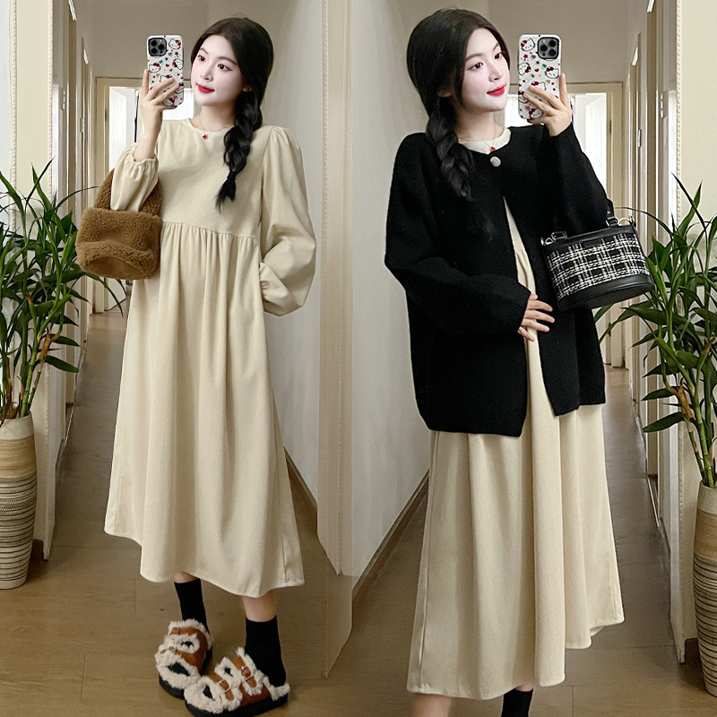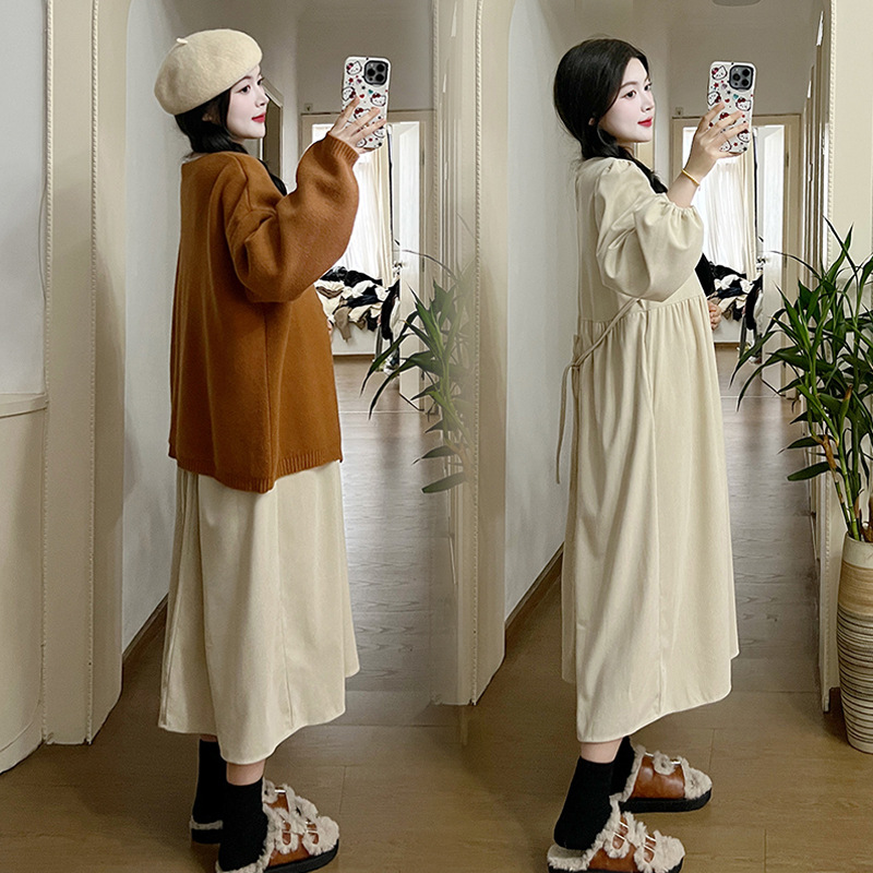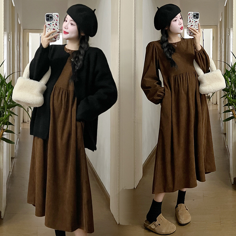 Maternity Dress Autumn And Winter French Retro Loose Corduroy Dress With Lazy Style Sweater Jacket