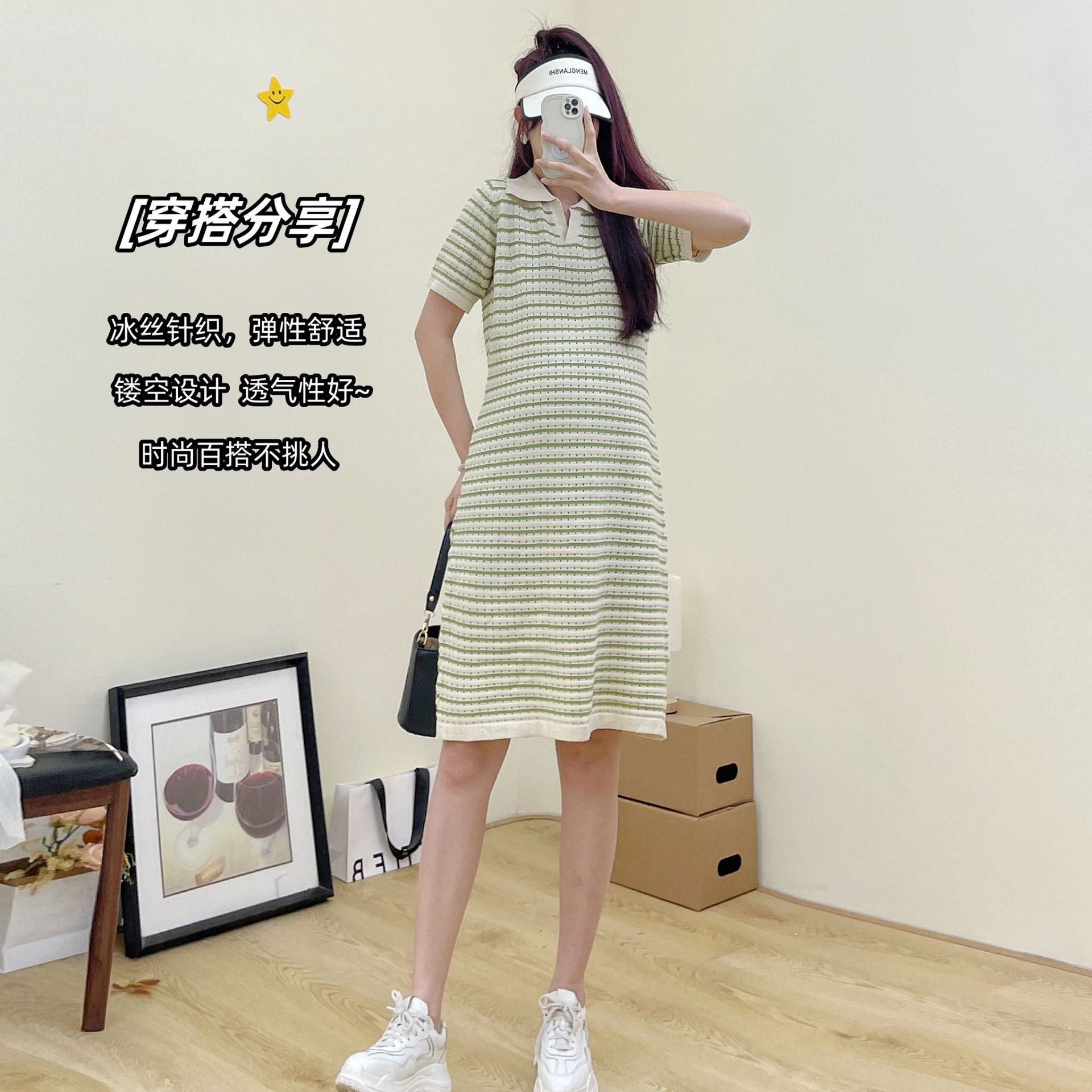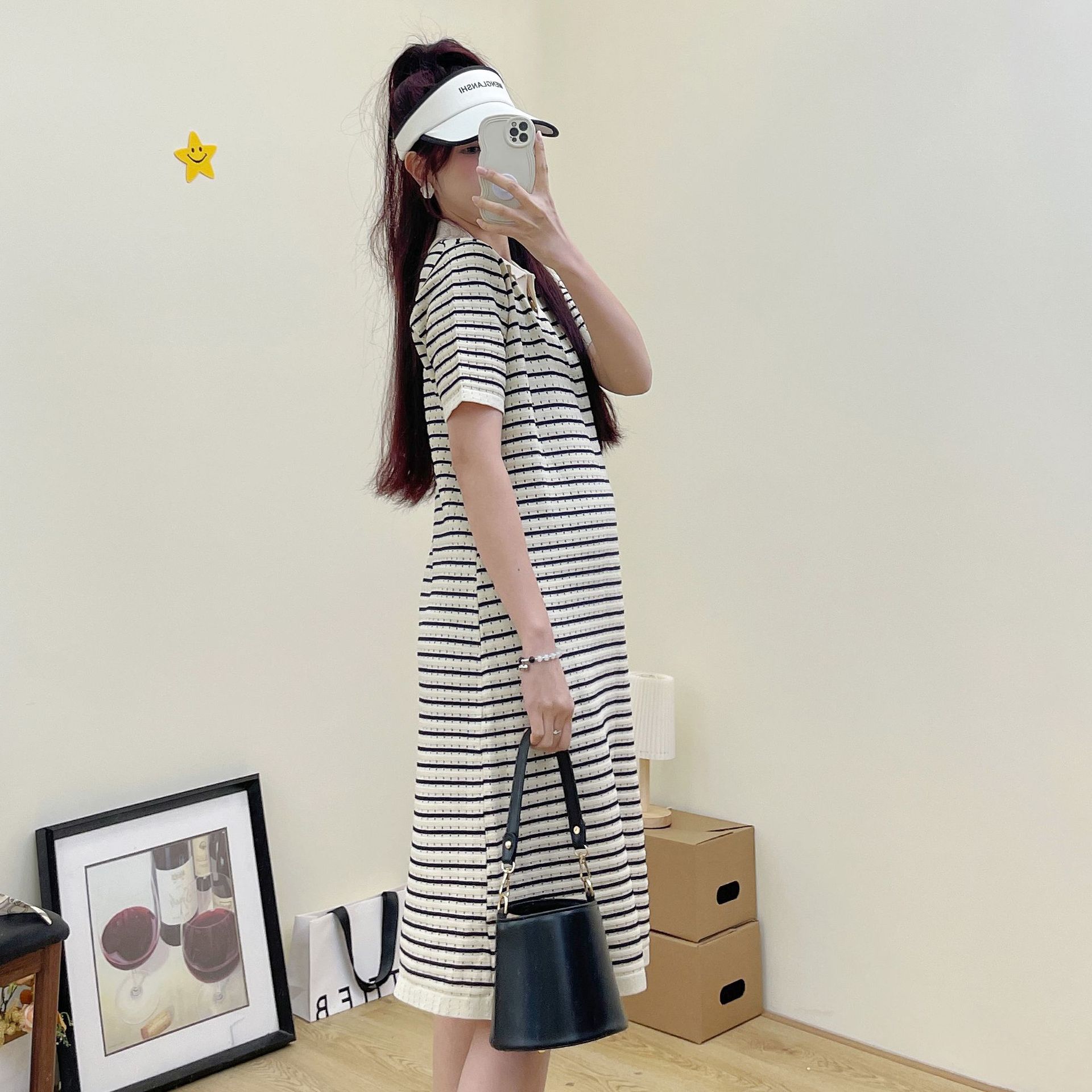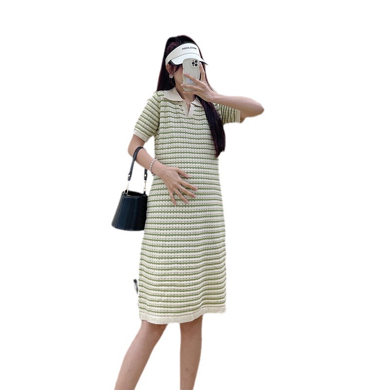 Xue Meifu Maternity Dress Summer Korean Style Loose Slim Striped Ice Silk Knitted Dress Maternity Dress