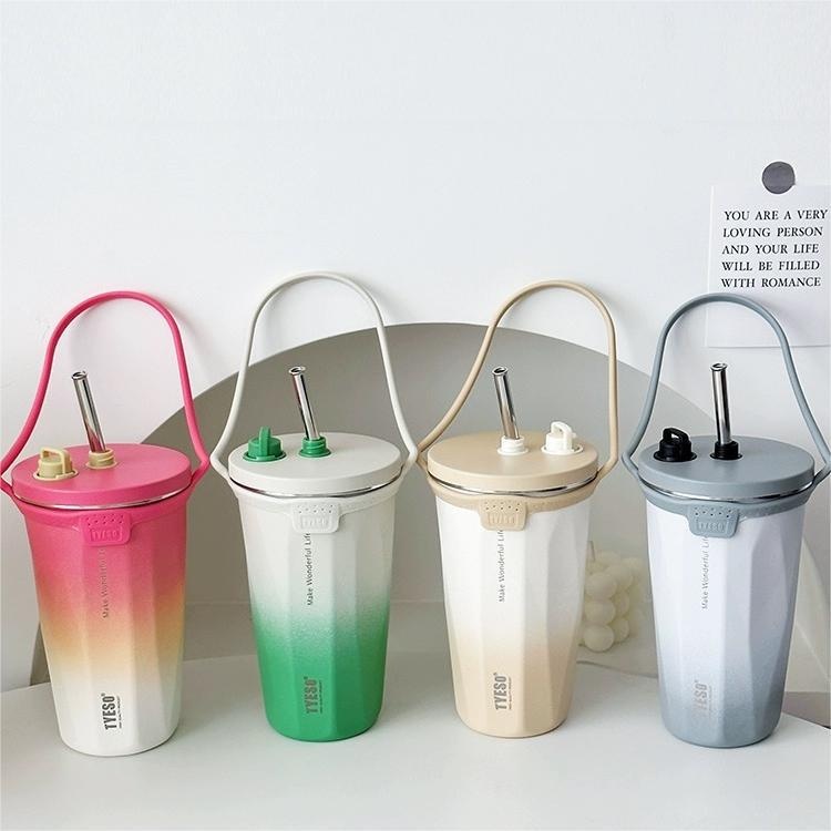 Stainless Steel Coffee Cup Ice Tyrantulation Car Straw Cup Vacuum Large Capacity Water Bottle