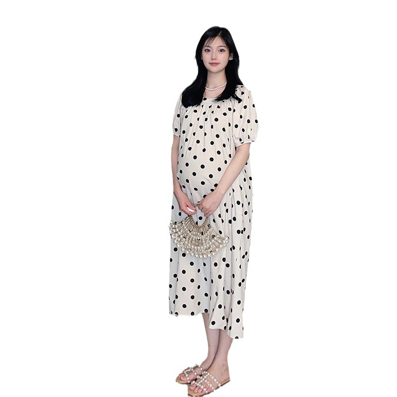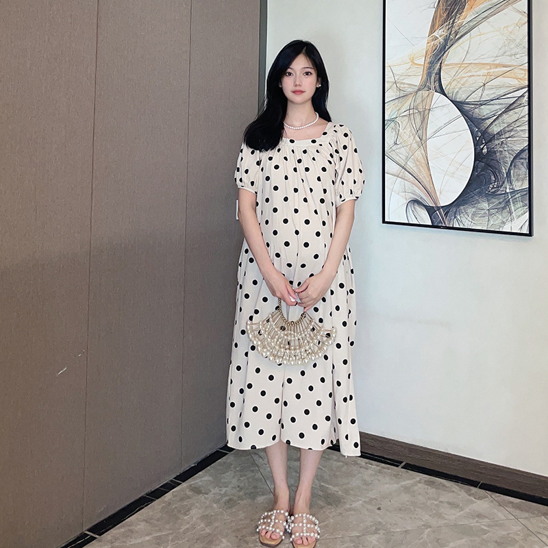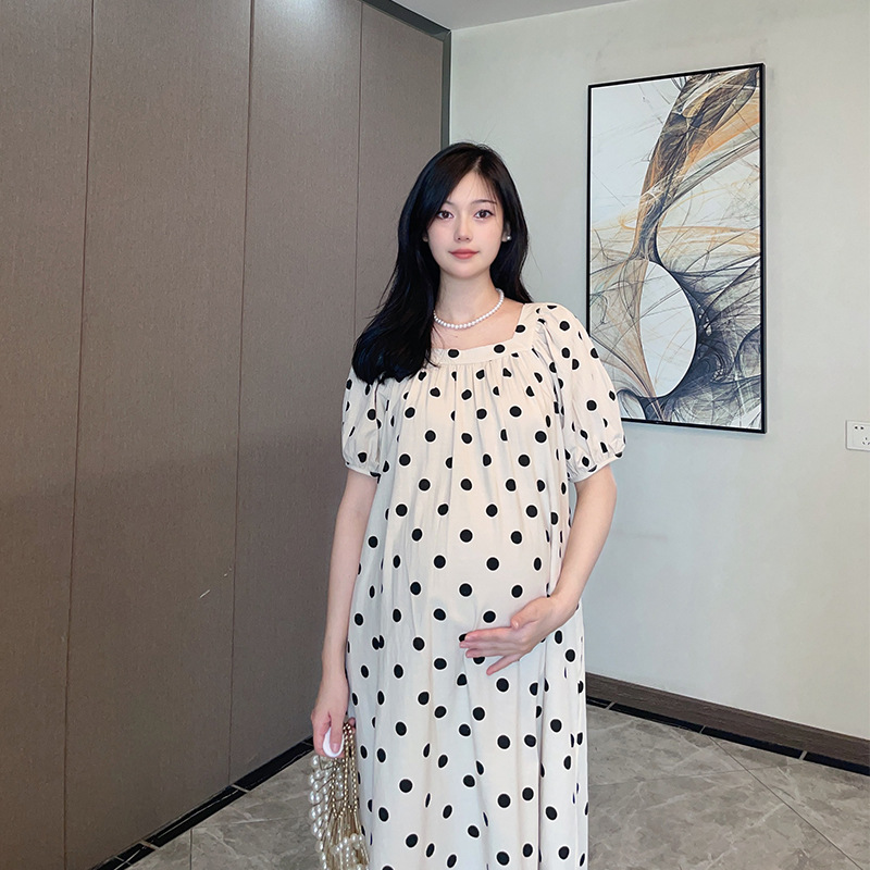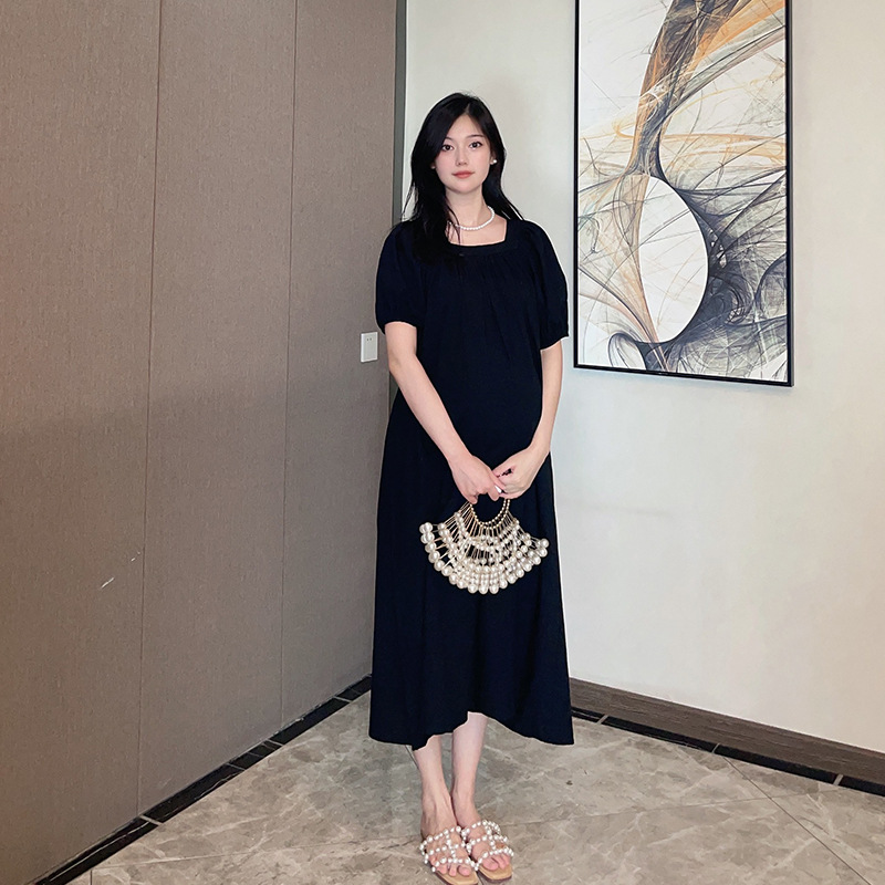 Xue Meifu Maternity Dress Summer Dress Korean Style Fashionable Temperament Square Collar Loose Large Size Medium And Long Maternity Dress