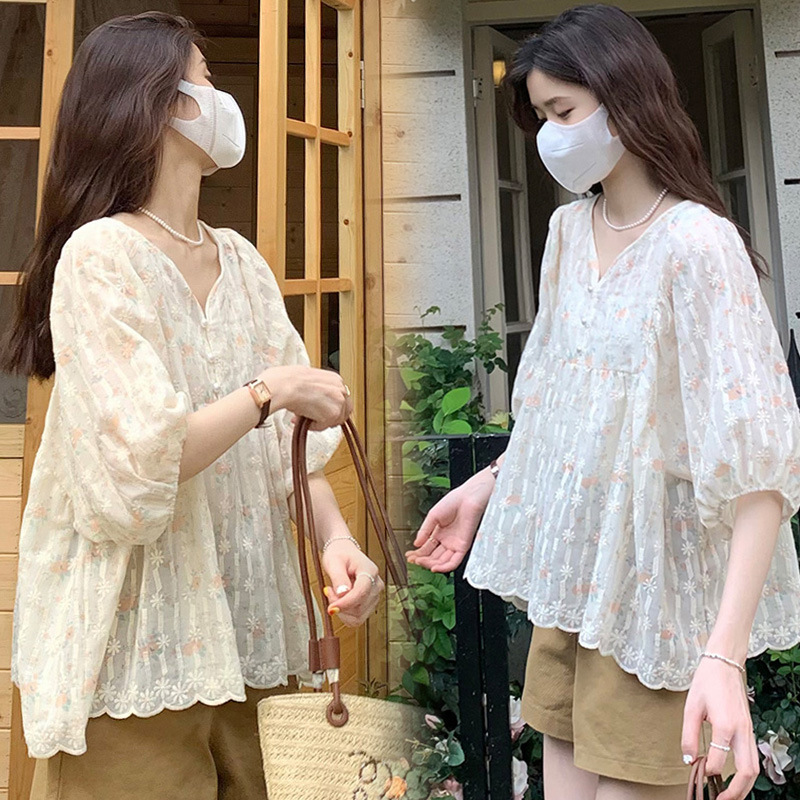 Pregnant Women's Suit Summer Two-piece Suit Fashionable Loose Sweet Temperament V-neck Floral Top+Slim Belly Shorts