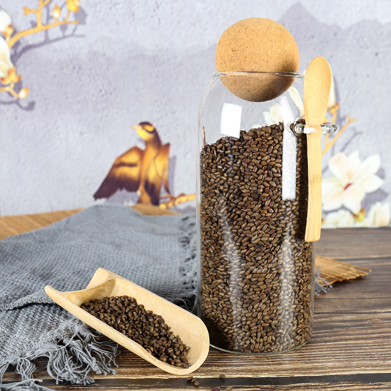 Glass Storage Jar,Grain Sealed Jar With Spoon,Round Cork,High Borosilicate Glass Sealed Tea Jar