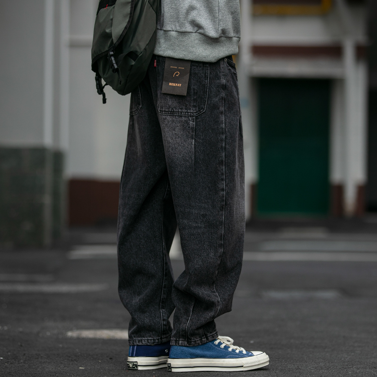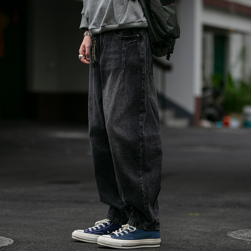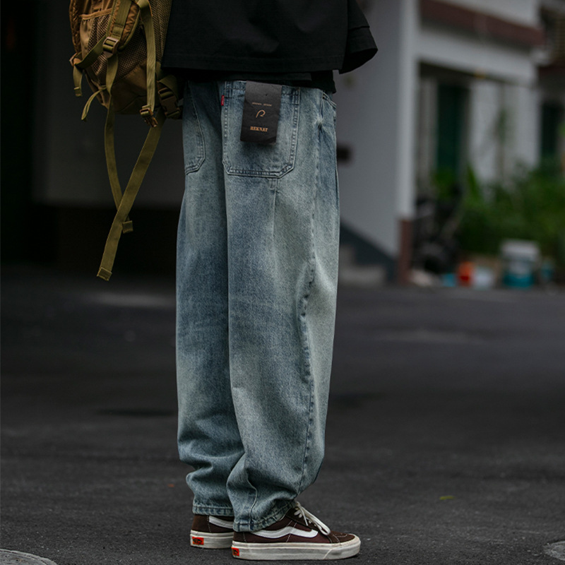 American Retro Multi-fold Workwear Jeans Men's Loose Straight Tapered Pants Washed And Distressed Wide-leg Harem Pantsy