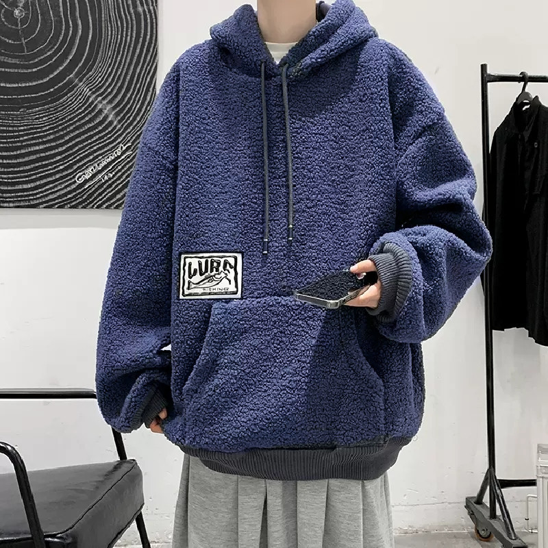 Hooded Sweatshirt Men's Winter Plus Velvet Thickened Winter Clothing Topsy Brand Youth Lambskin Jacket
