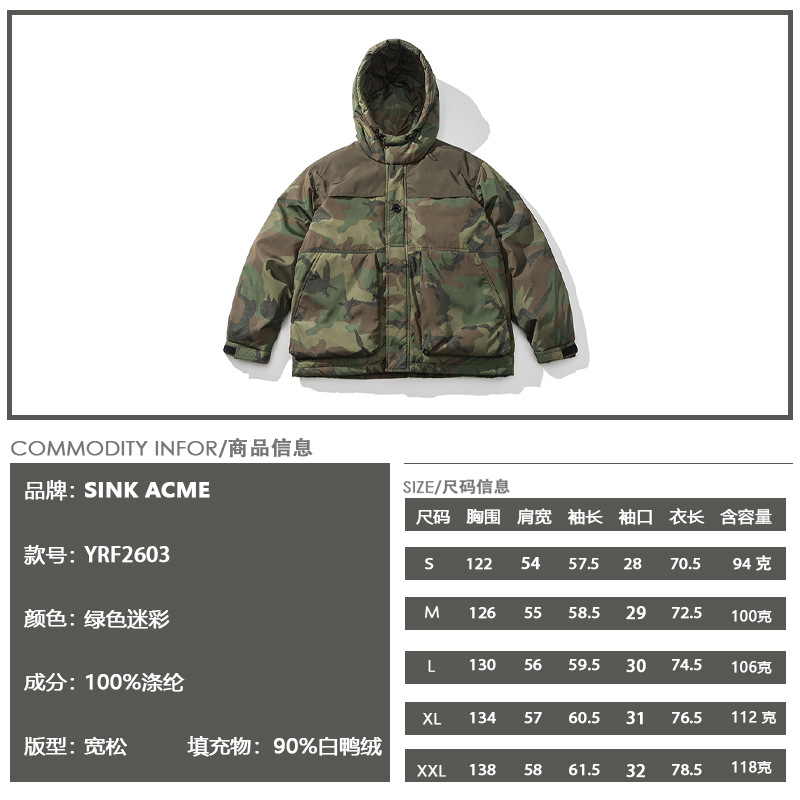 Yidao Vintage Winter Japanese Retro Camouflage Workwear Down Jacket Men Couple90 White Duck Down Jacket