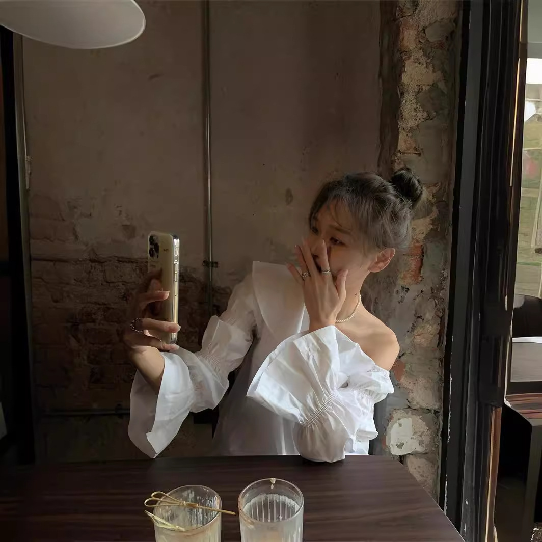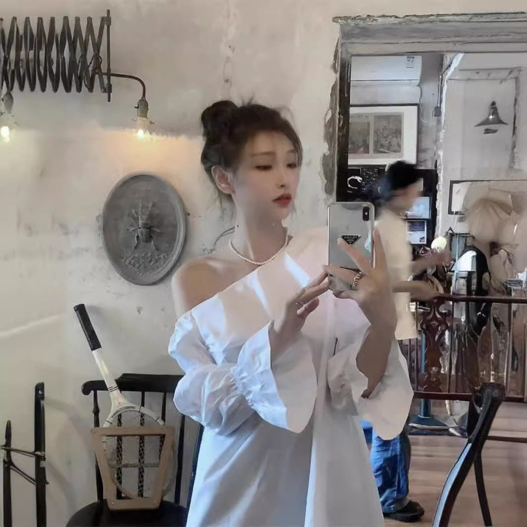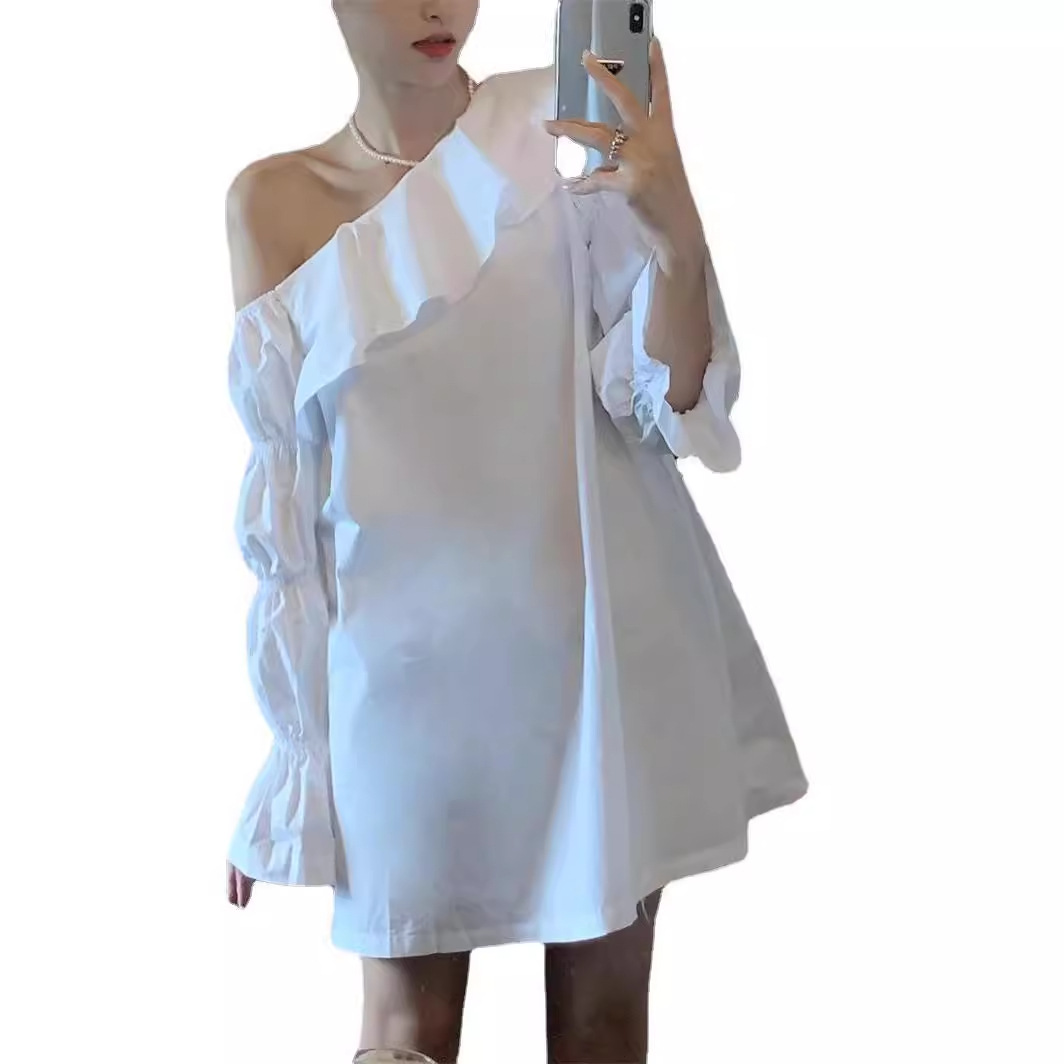 Spring Style Ruffle Irregular Off-shoulder Long-sleeved Dress Female Autumn Niche Scheming Slimming Meat-covering Skirt