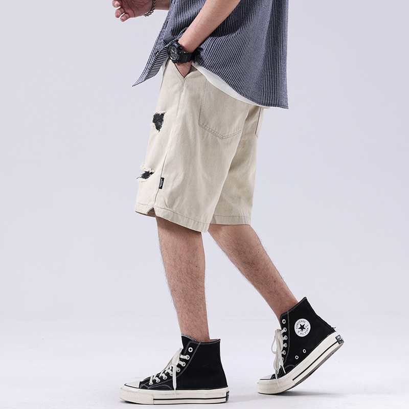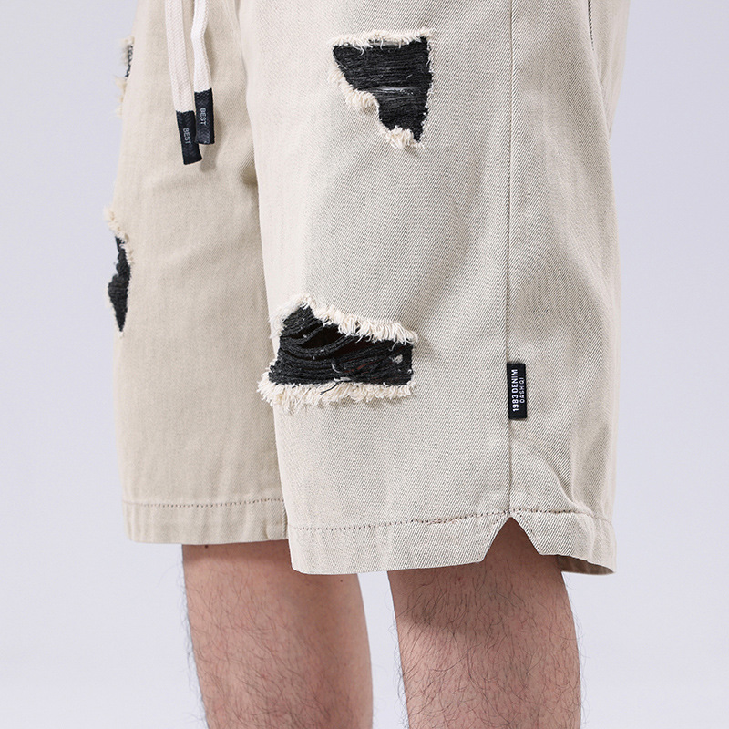 Yidao Vintage Summer Youth Japanese Loose Denim Shorts Personality Ripped All-match Men's Pants