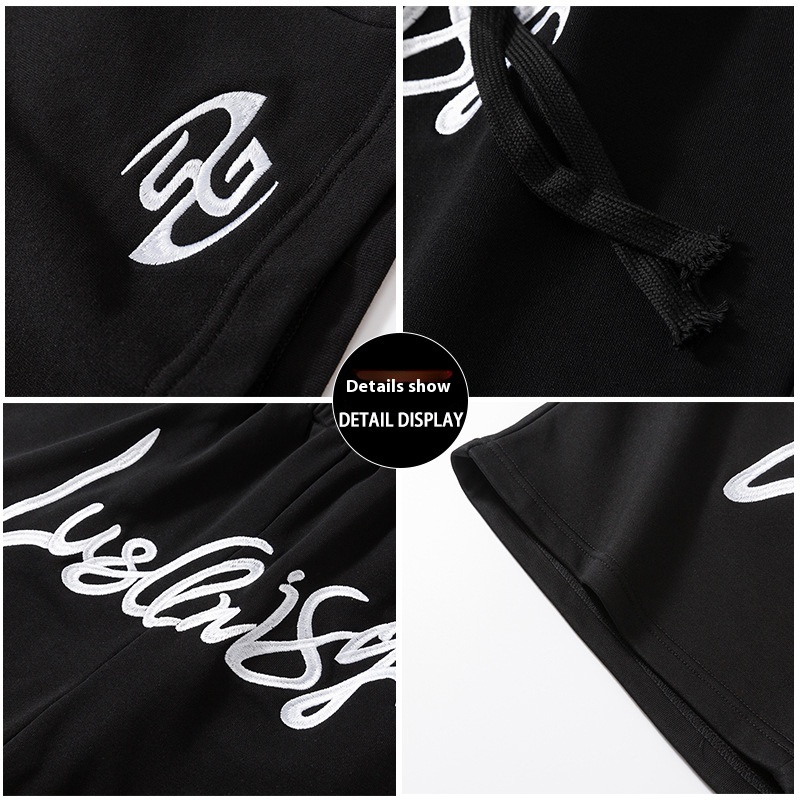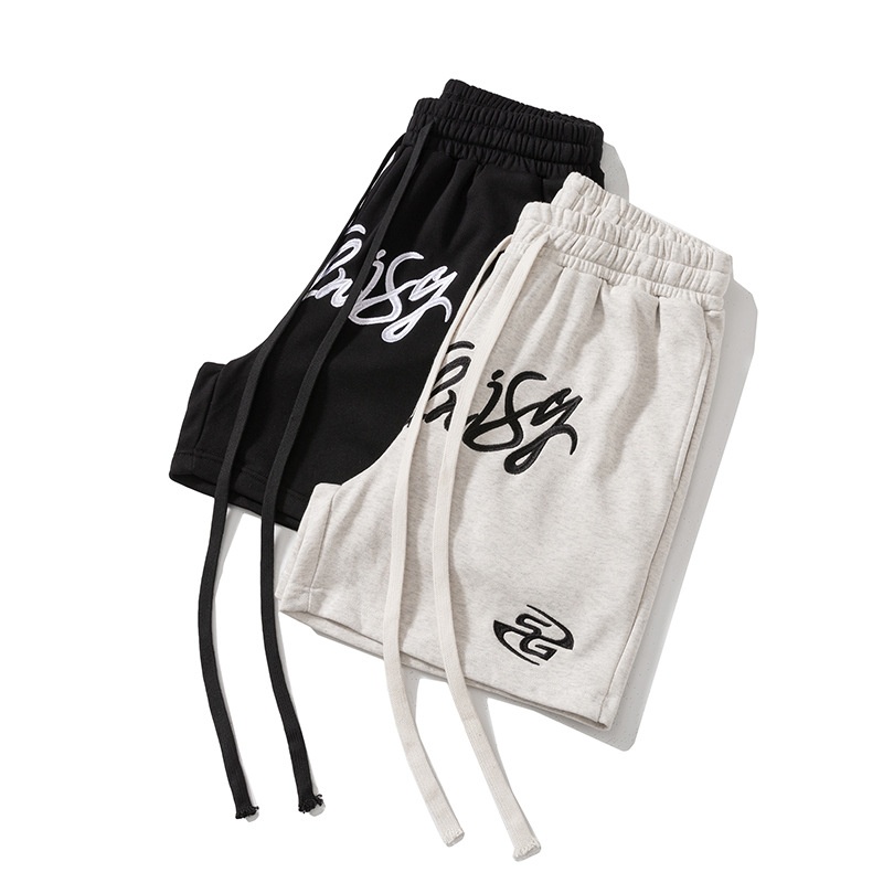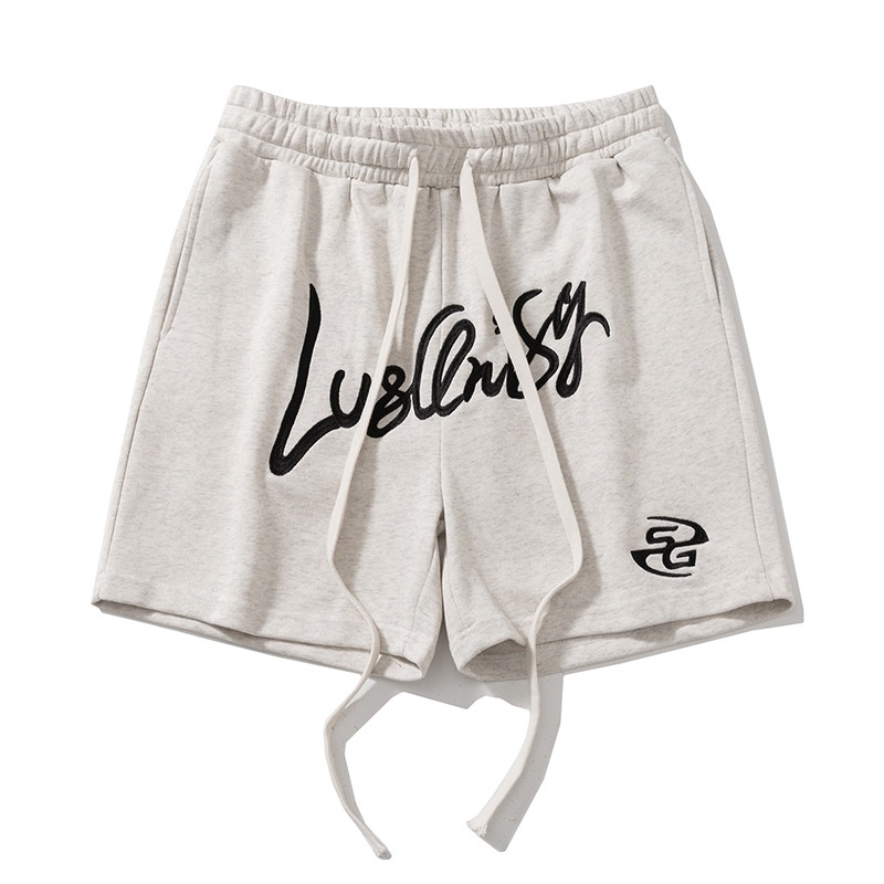 Summer Sports Shorts For Boys Retro Letter Embroidery Terry Mother Street All-match Casual Loose Four-point Pants