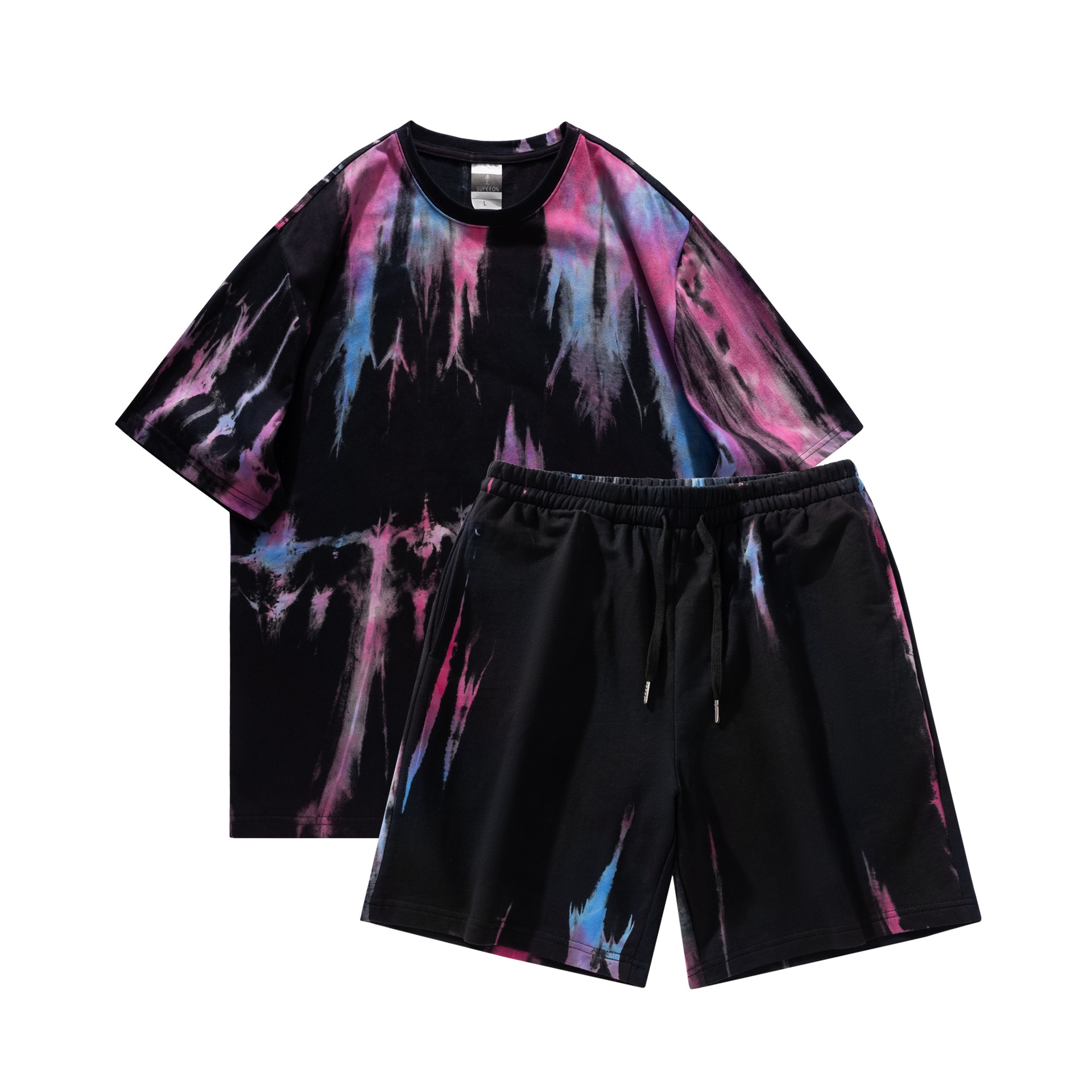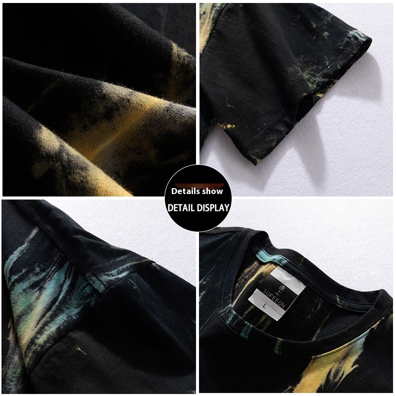 Men's Suit T-shirt American Retro Heavy Summer Tie-dye Short-sleeved Shorts Casual Two-piece Suit For Men