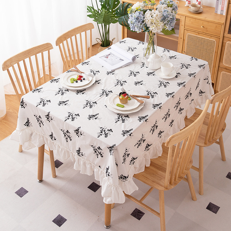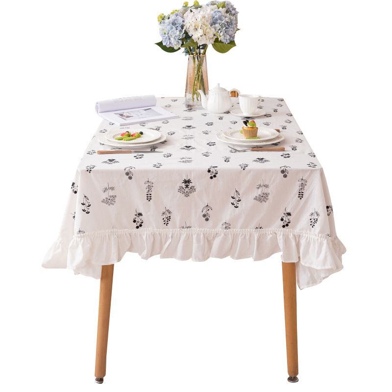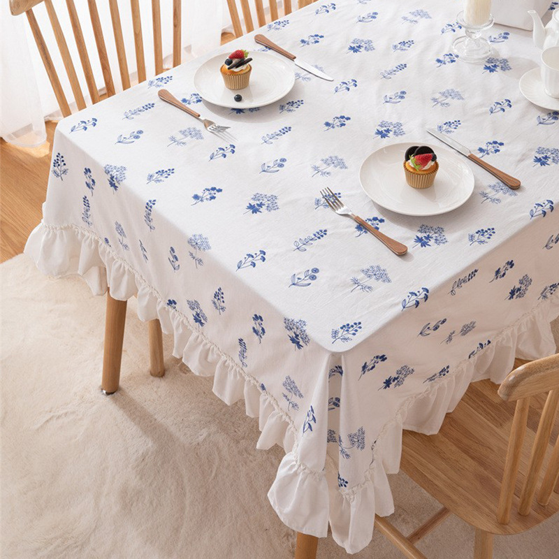 Cotton Embroidery Small Fresh Lotus Leaf Edge Restaurant Tablecloth Rectangular Style Coffee Table Cover Cloth Photo Background Cloth