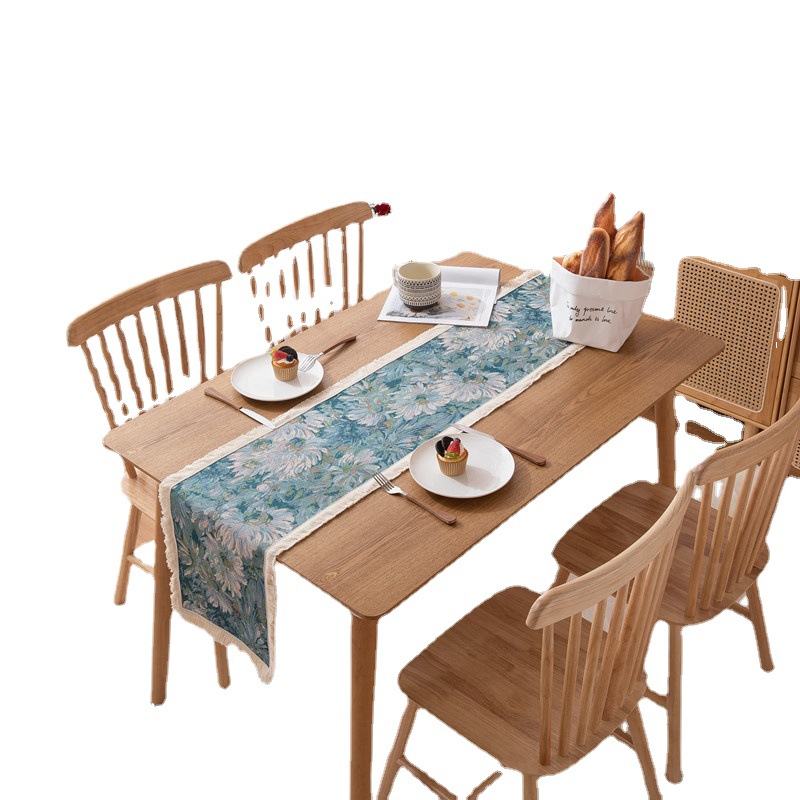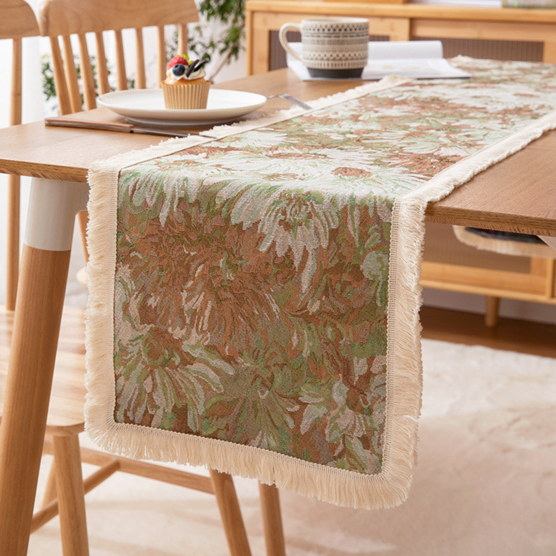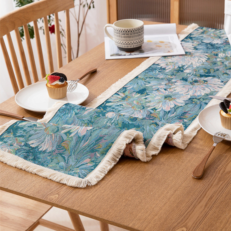 American Retro Table Flag Polyester Cotton Yarn-dyed Jacquard Oil Painting Style Small Daisy Tassel Bed Flag Home Coffee Table Cover