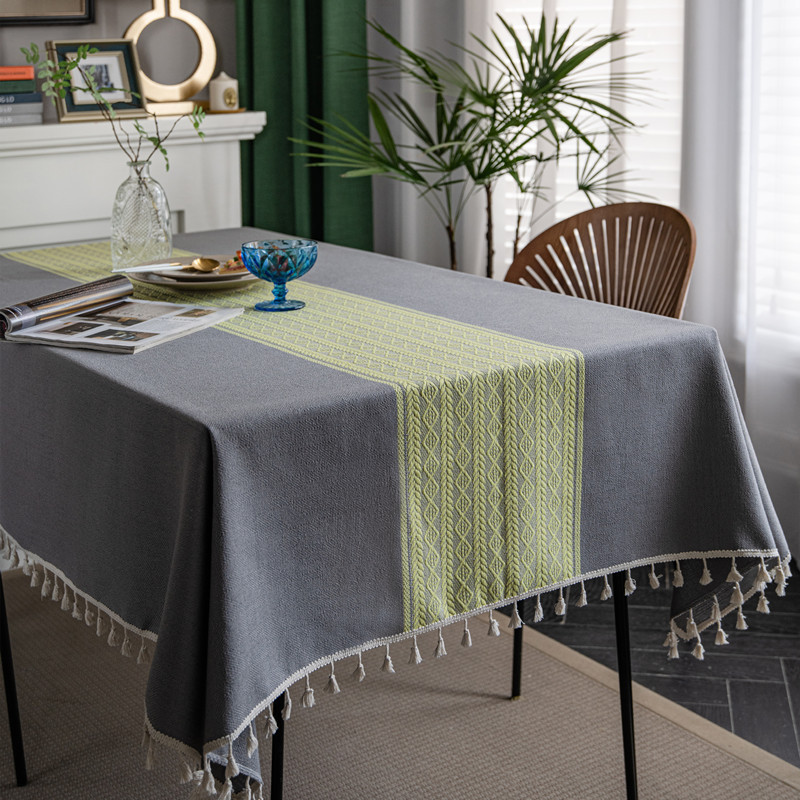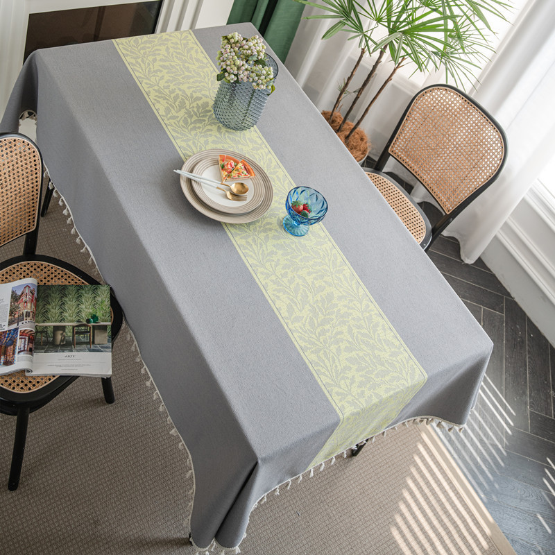 Tablecloth Anti-scalding And Wash-free All-polyester Jacquard Gray Leaf Tassel Rectangular Coffee Table Tablecloth Cover Towel S