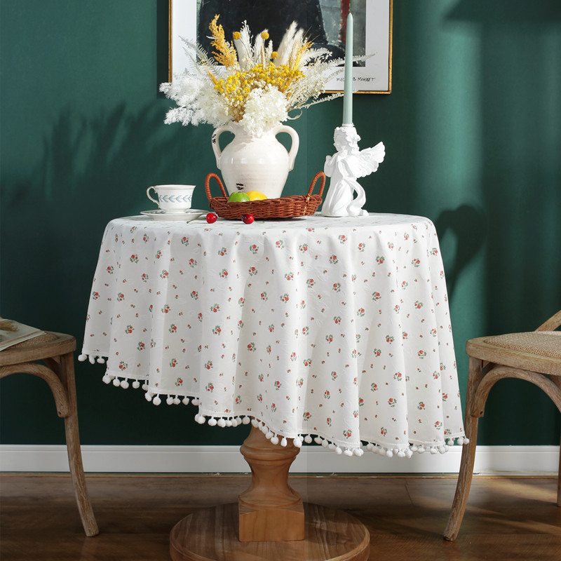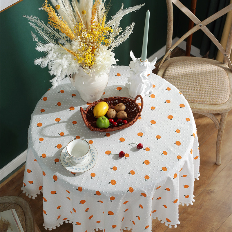 Pastoral Cotton Jacquard Leaf Cotton Orange Cut Flower Round Tablecloth Coffee Table Tablecloth Cover Towel