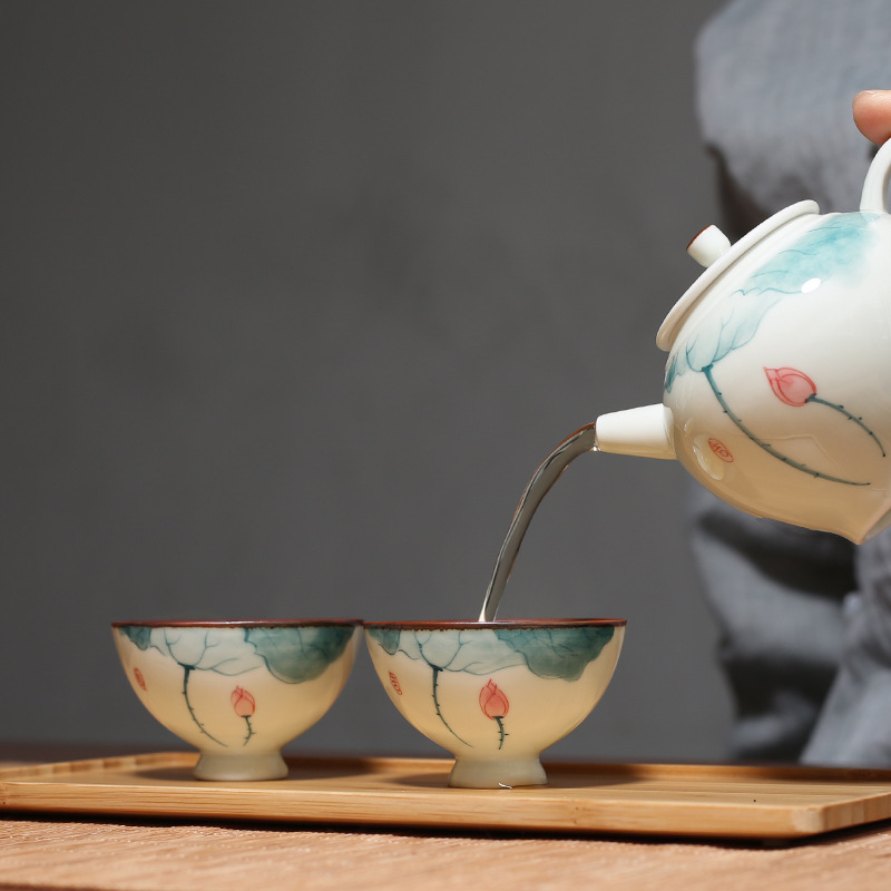 Hand-painted Lotus Tea Cup Ceramic Tea Drinking Cup Host Cup Single Cup Kung Fu Tea Set Small Tea Cup Tea