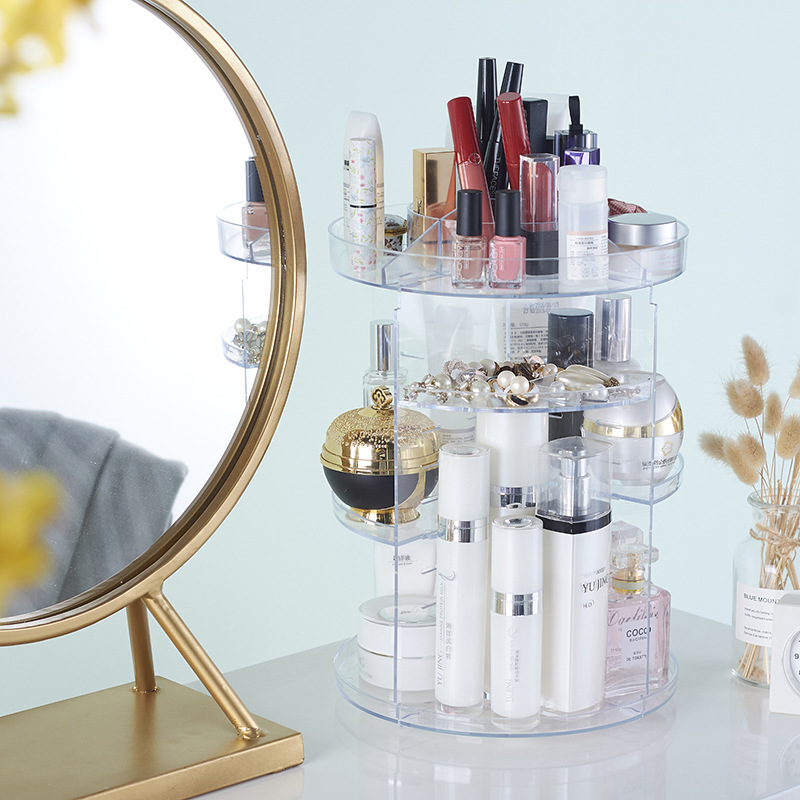 Rotating Transparent Acrylic Cosmetics Storage Box Desktop Storage Box Skin Care Lipstick Home Dressing Table Rack