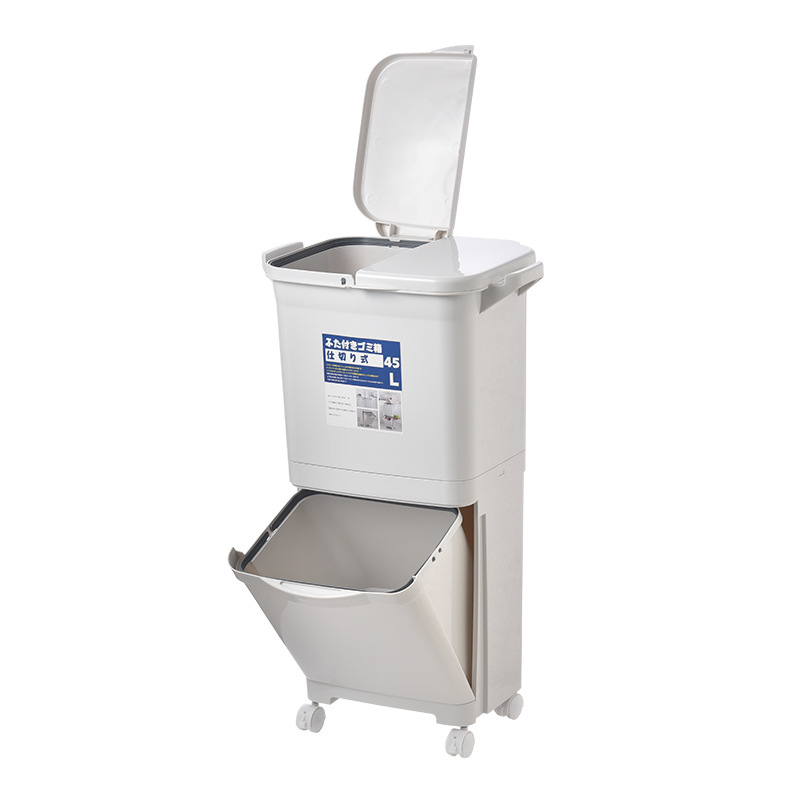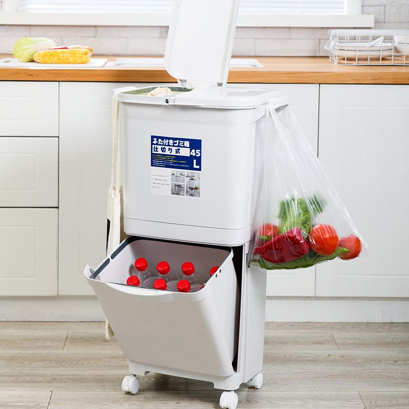 Garbage Classification Trash Can Household Double-layer Kitchen Trash Can With Lid Large Barrel Pulley Plastic Dry And Wet Separation Barrel Box