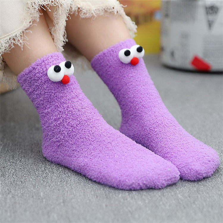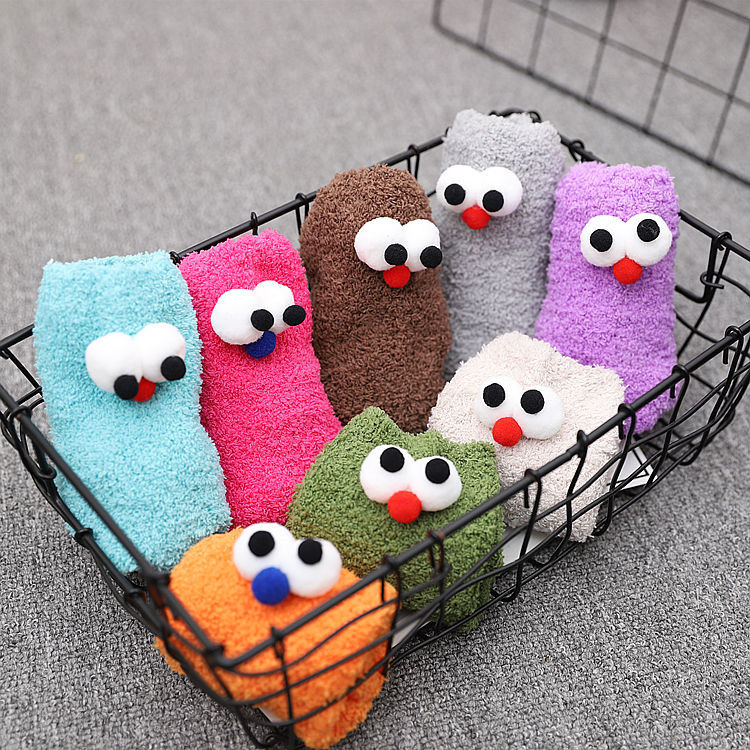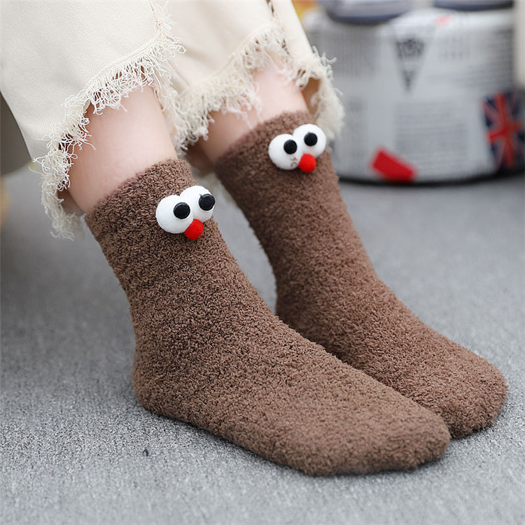 Japanese Coral Fleece Pile Socks Women's Socks Autumn And Winter Three-dimensional Eyes Cartoon Socks Half-velvet Home Warm Sleeping Socks