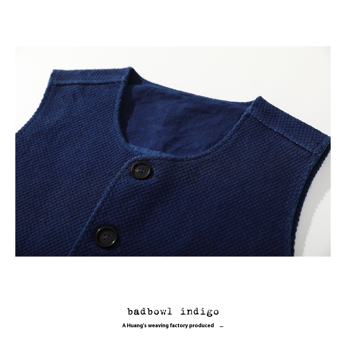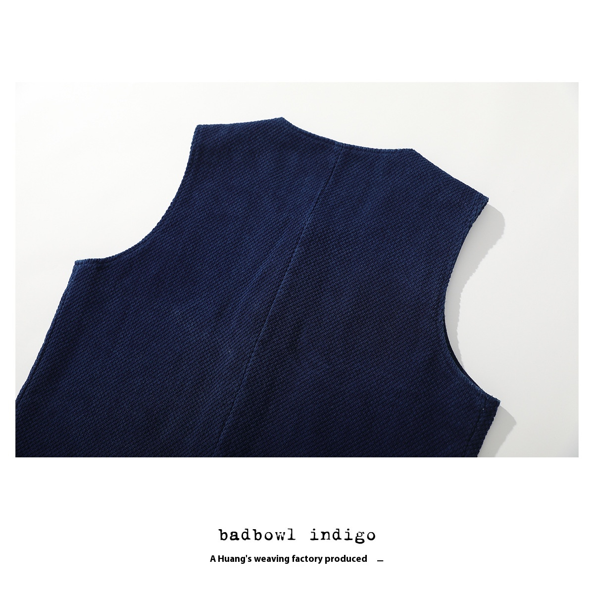 Huang's Weaving Indigo Blue Dyed Jacket Japanese Retro Sashiko Sashiko Kendo Uniform Fabric Brown Vest