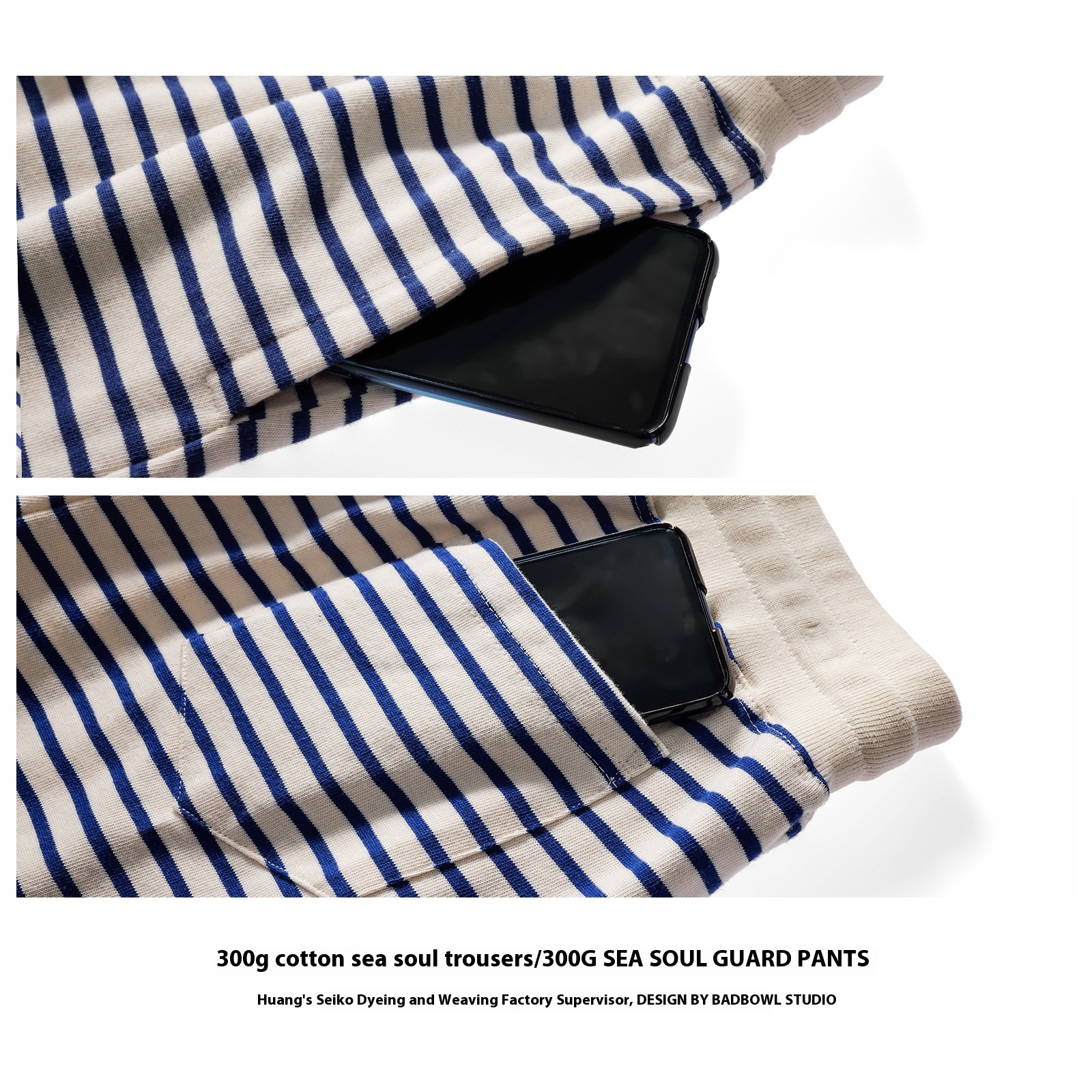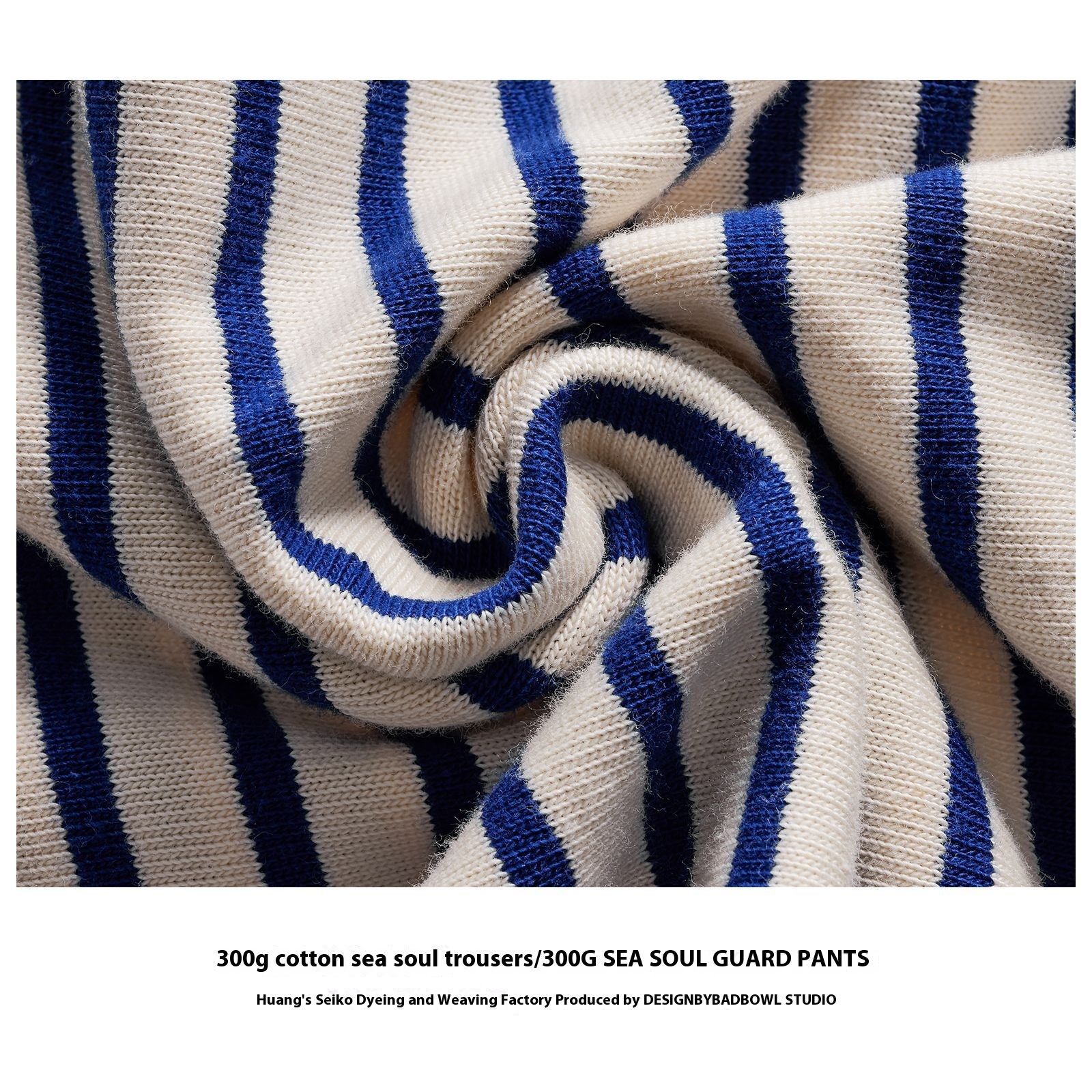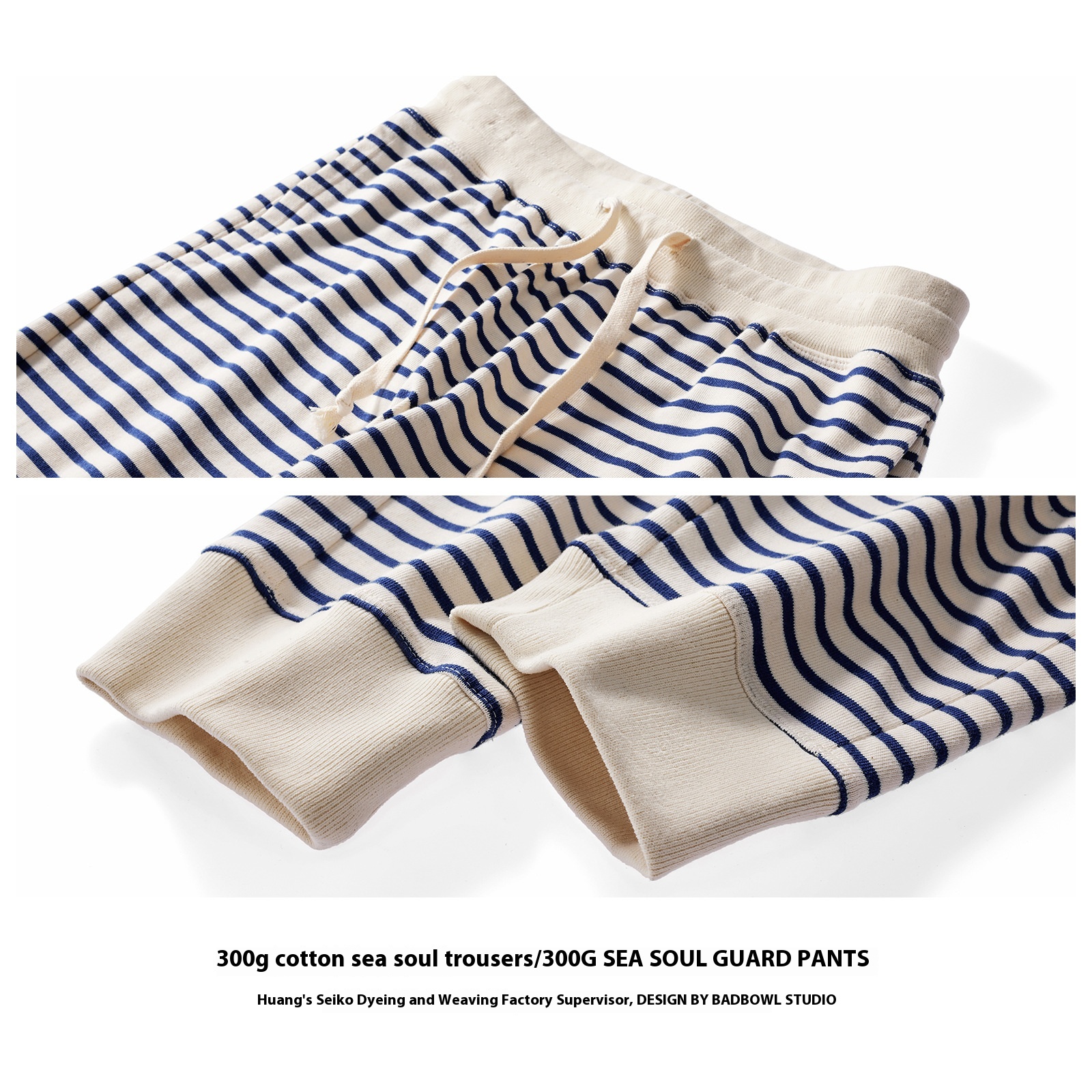 Huang's Woven300g Heavy Cotton Sweatpants Sailor Striped Trousers Retro Men's Trousers Loose Leggings