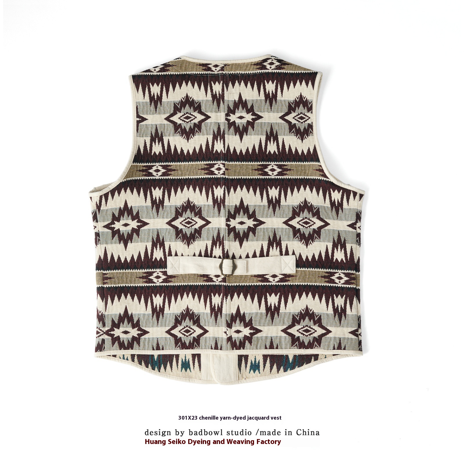 Huang's Weaving23 Autumn And Winter Vest American Retro Indian Pattern Yarn-dyed Vest Jacket Thickened Washing