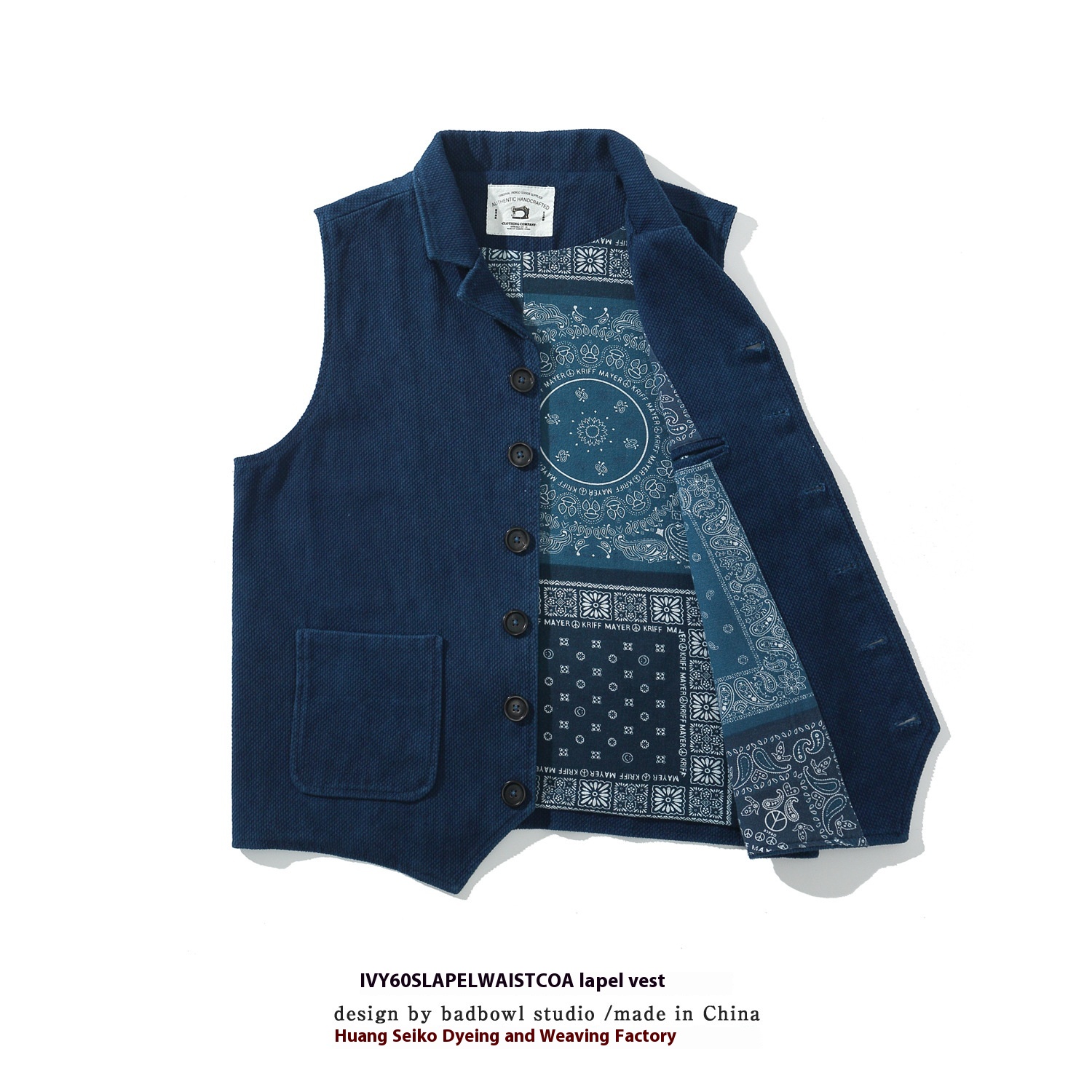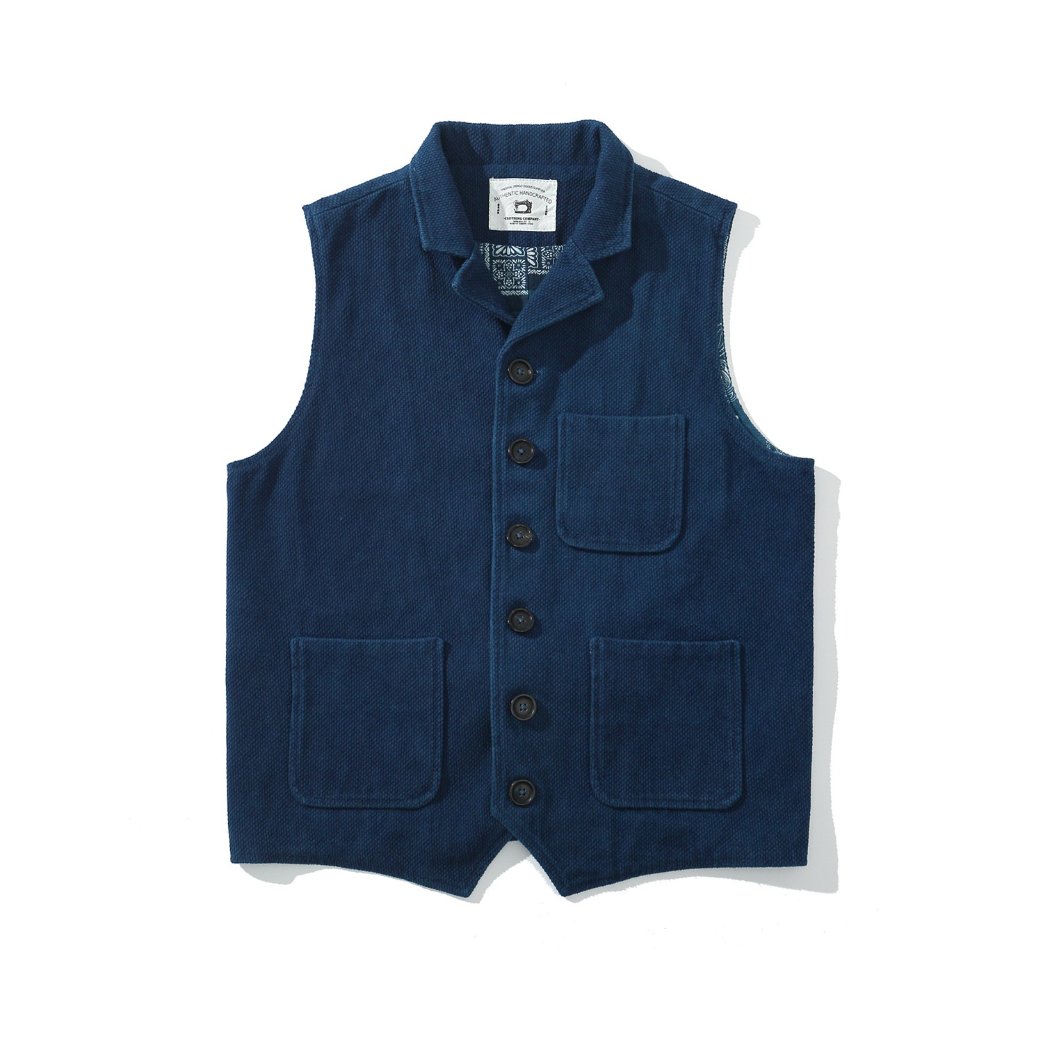 Indigo Plant Blue Dye Suit Vest Classic American Retro Heavy Vest Multi-pocket Work Vest Jacket