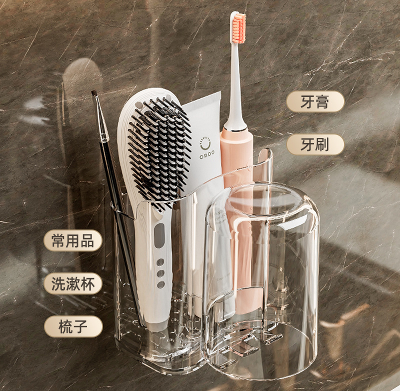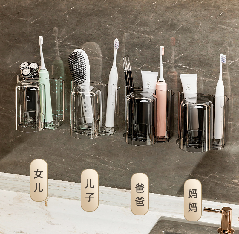 Toothbrush Cup Storage Rack Light Luxury Punch-free Bathroom Wall-mounted Toothpaste Toothbrush Cup Drain Rack Bathroom Storage
