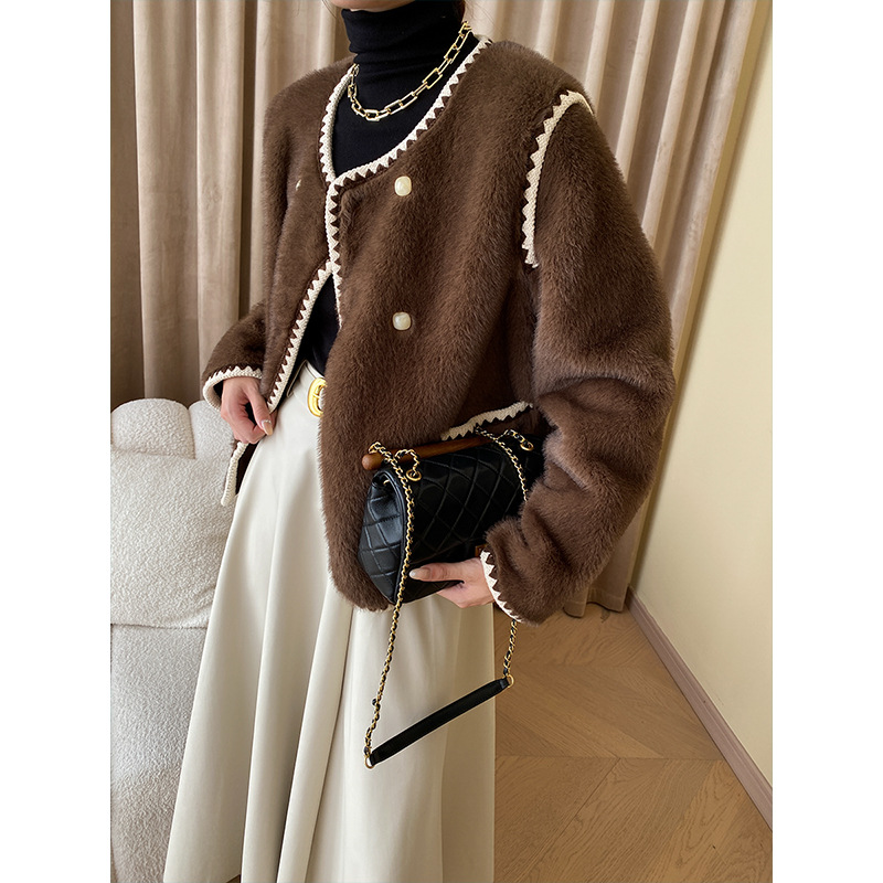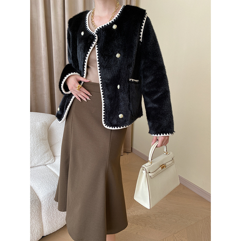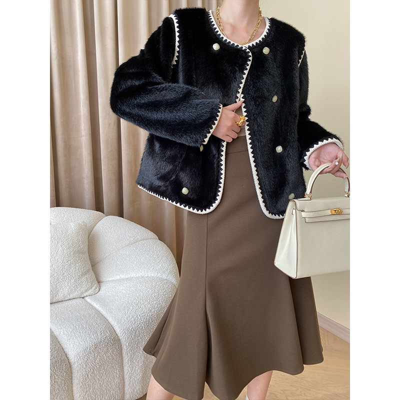 Sinan French Gentle Series Advanced Contrast Color Small Fragrance Style Design Fur Eco-friendly Fur Coat SN4769