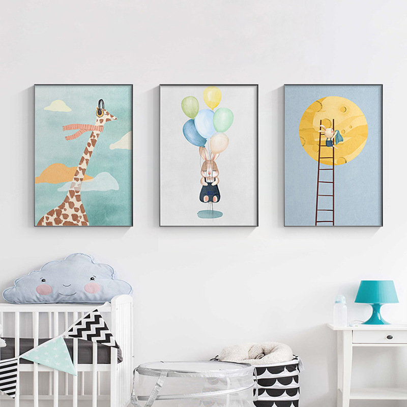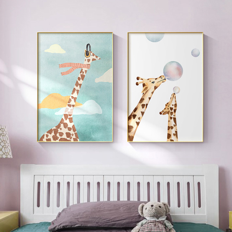 Children's Room Decoration Painting Boys And Girls Nordic Bedroom Bedside Painting Animal Giraffe Sofa Background Wall Painting