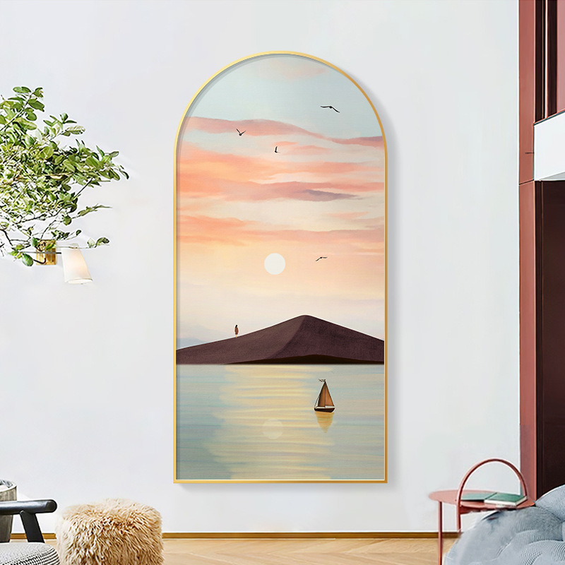 Nordic Style Entrance Hallway Corridor Decoration Painting Living Room Sofa Background Wall Hanging Painting Arched Mural Crystal Porcelain Painting Landscape