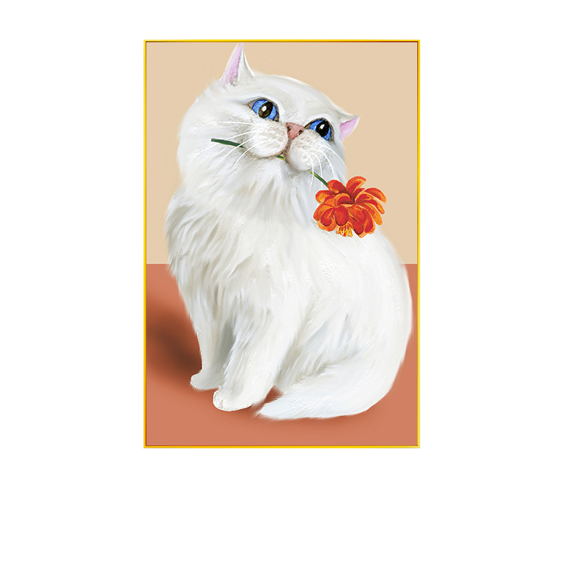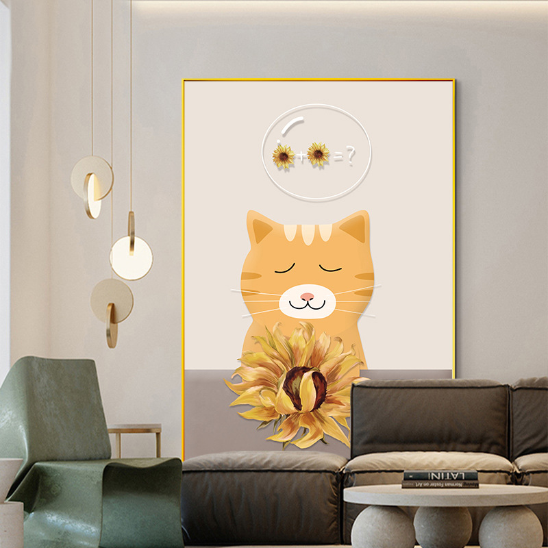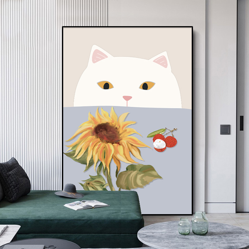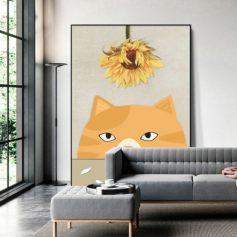 Nordic Small Fresh Style Hanging Painting Cat Floor Painting Living Room Sofa Background Wall Decoration Painting Sunflower Mural