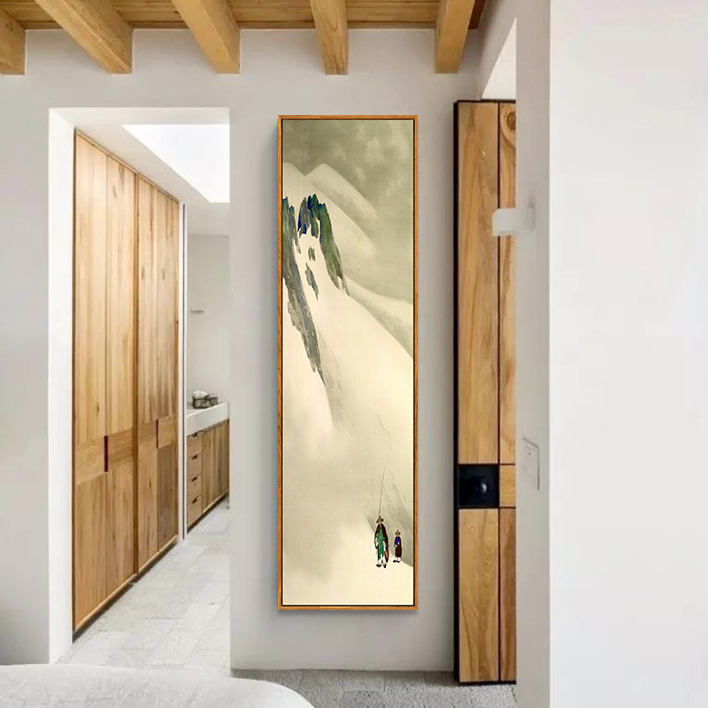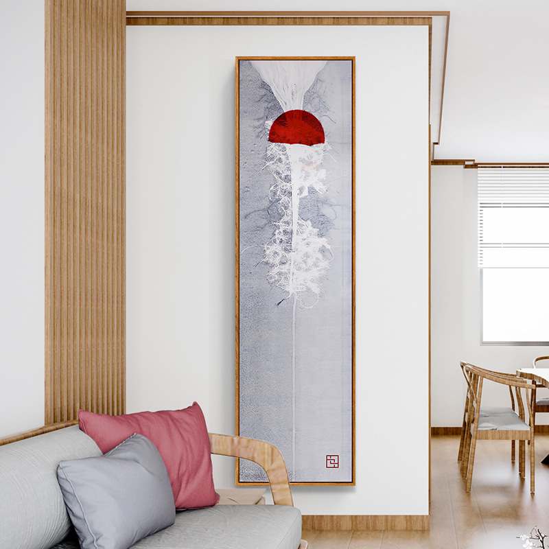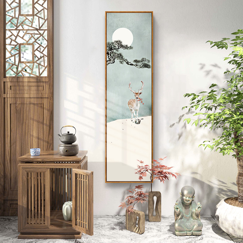 Japanese Log Style Entrance Living Room Decoration Painting Chinese Style Zen Villa Mural Corridor Hanging Painting Vertical Lotus