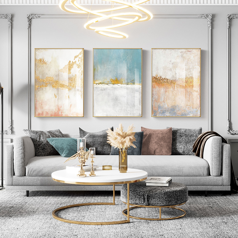 Modern Light Luxury Abstract Pink Gold Living Room Decoration Painting American Mural Sofa Background Wall Painting S