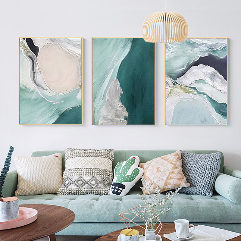 Modern Abstract Living Room Decorative Painting Nordic Style Blue Sea Sofa Background Wall Hanging Painting Hotel Homestay Mural
