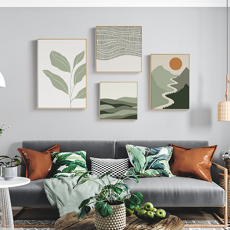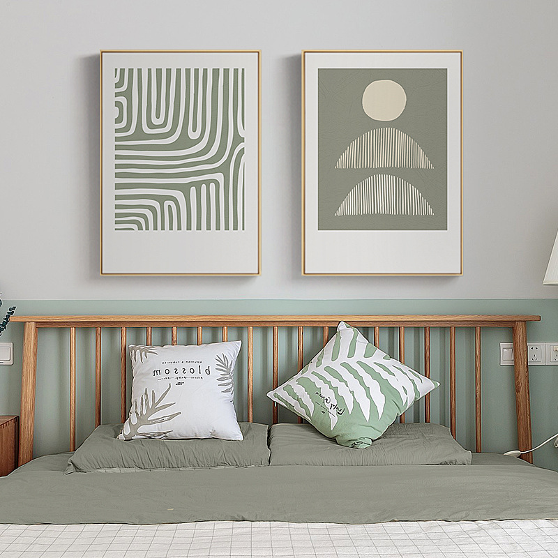 Nordic Small Fresh Living Room Decorative Painting Sofa Background Wall Hanging Painting Model Room Homestay Green Abstract Line Mural