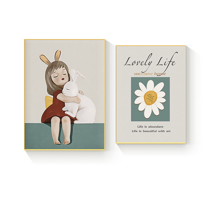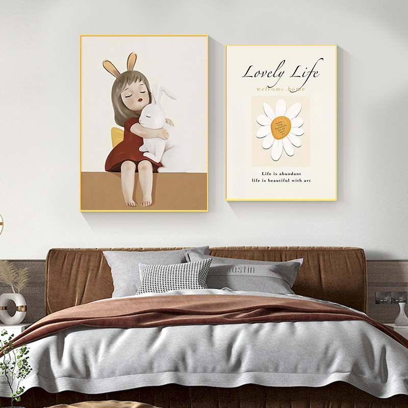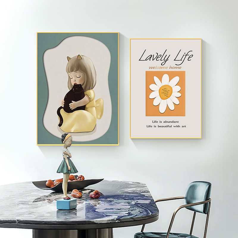 Modern Simple Living Room Decoration Painting Girl Cartoon Niche Style Abstract Bedroom Bedside Painting Sofa Background Wall Painting