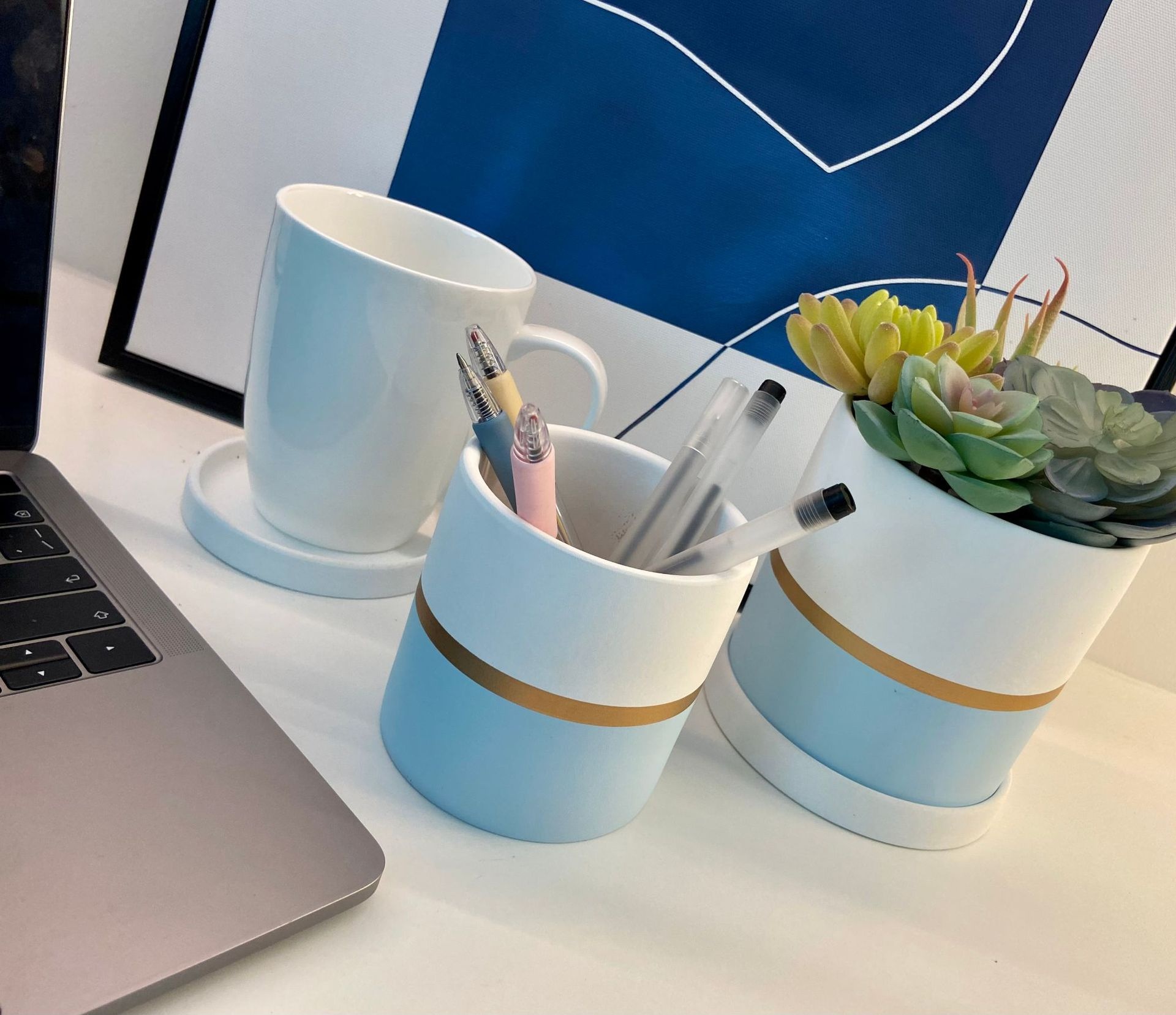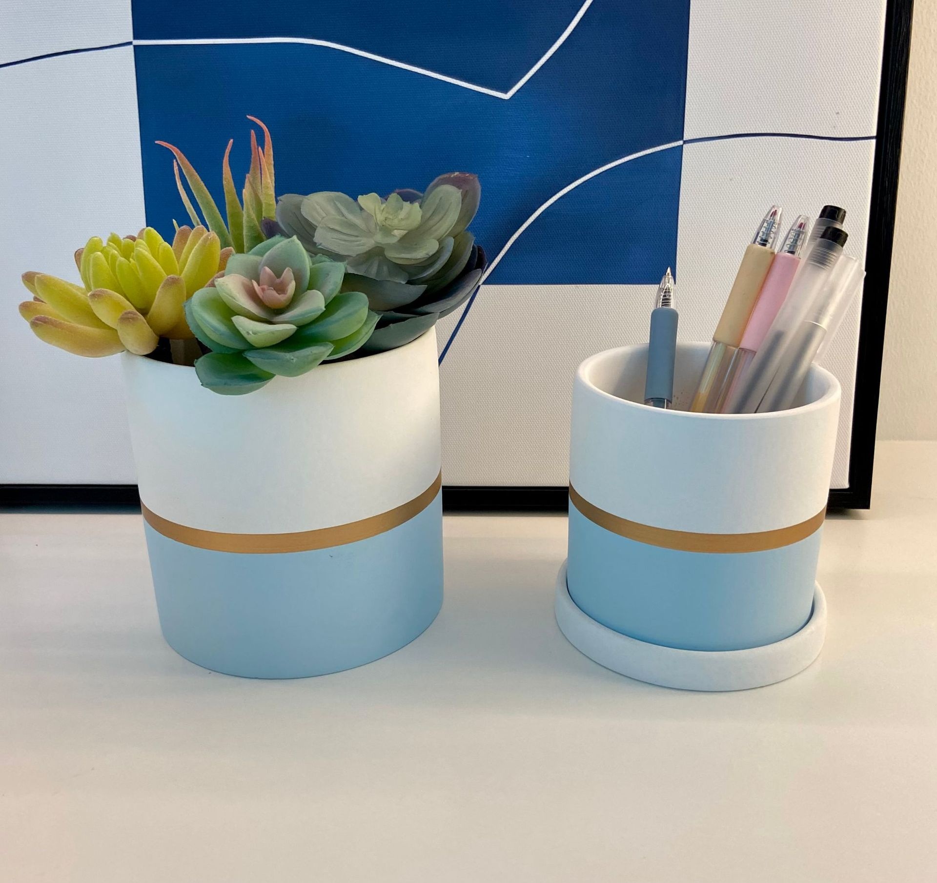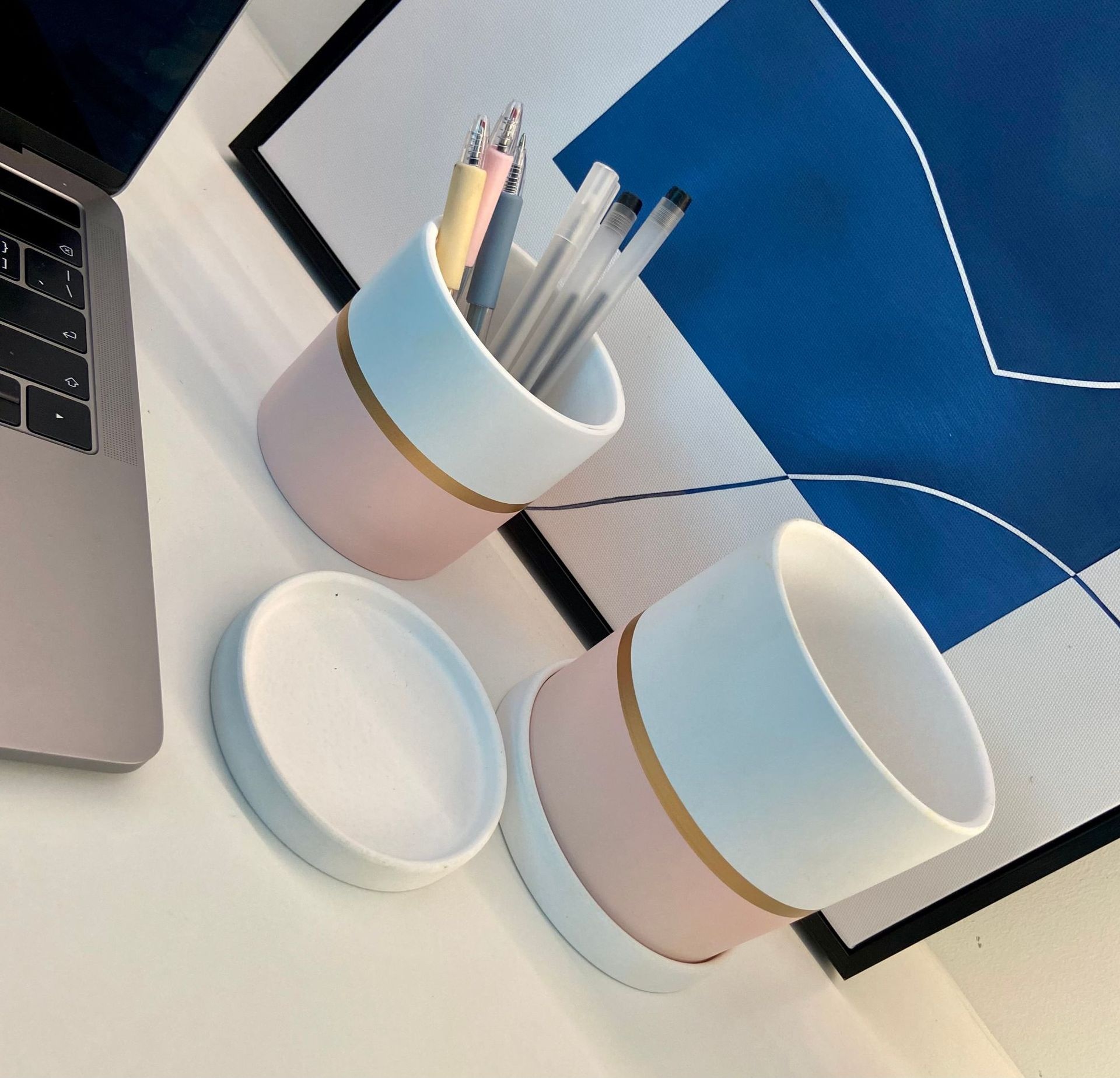 Home Office Ceramic Small Flower Pot Storage Jar Lipstick Storage Candle Jar Cylindrical Multifunctional Pen Holder