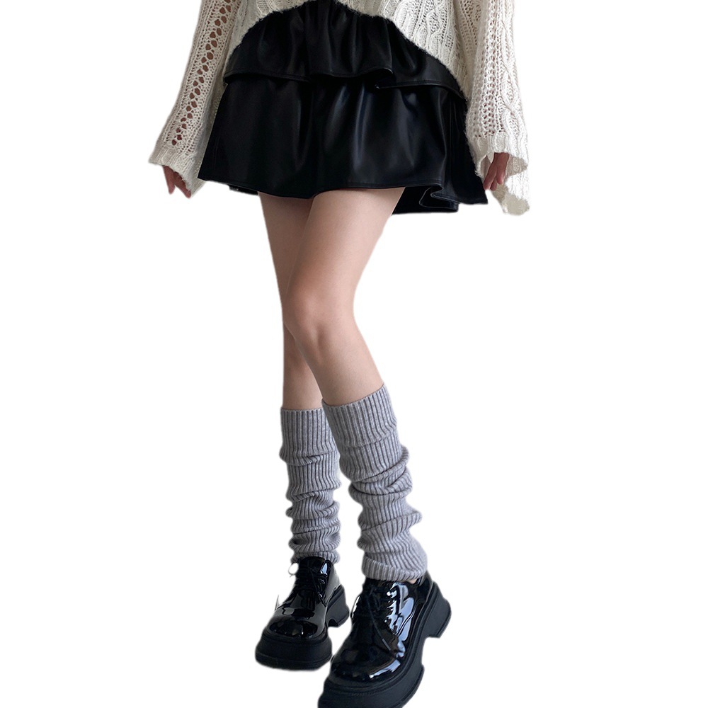 Pure Color Wool Knitted Socks Stacked Socks Japanese Calf Socks Autumn And Winter Warm JKLeg Covers Simple And Versatile Gentle Style