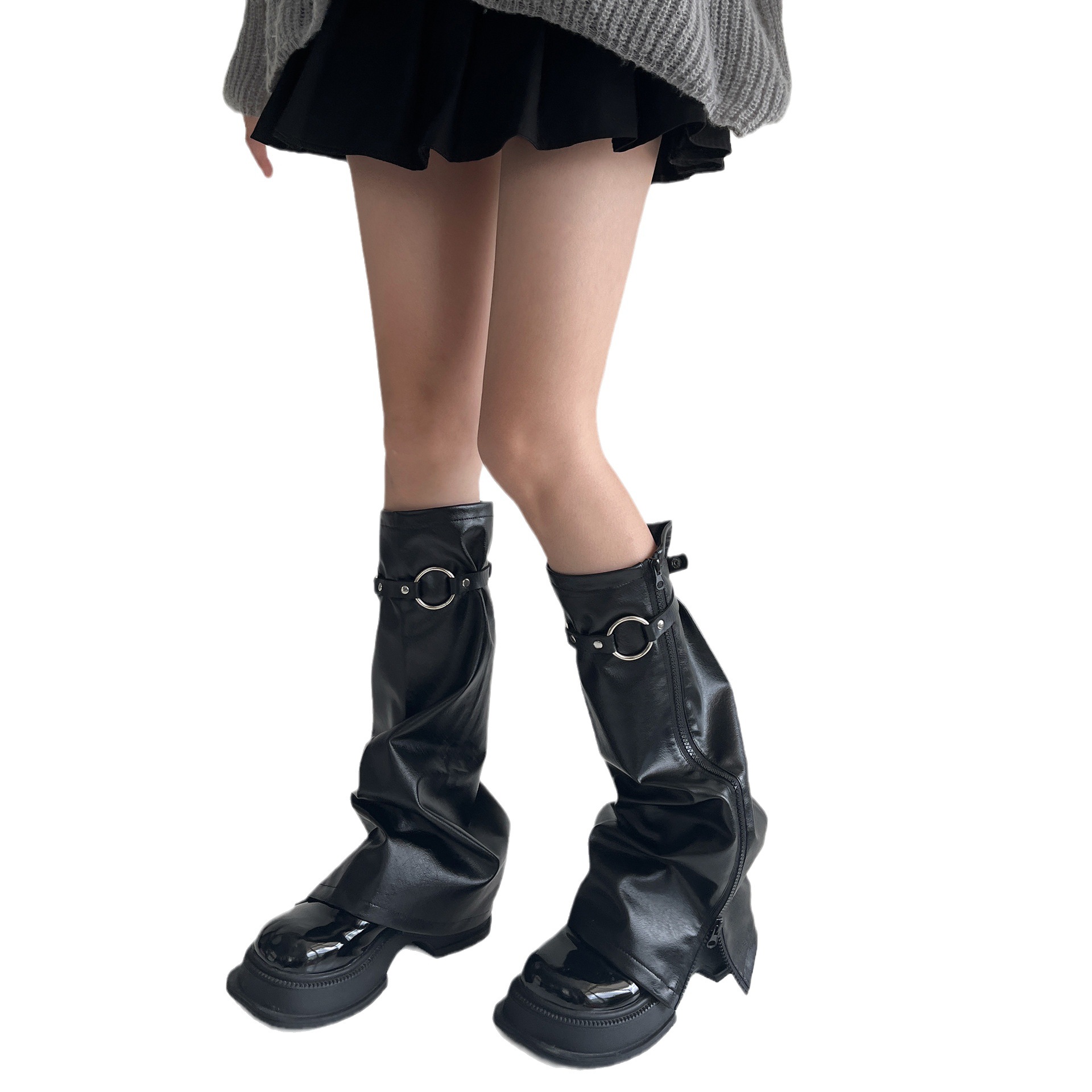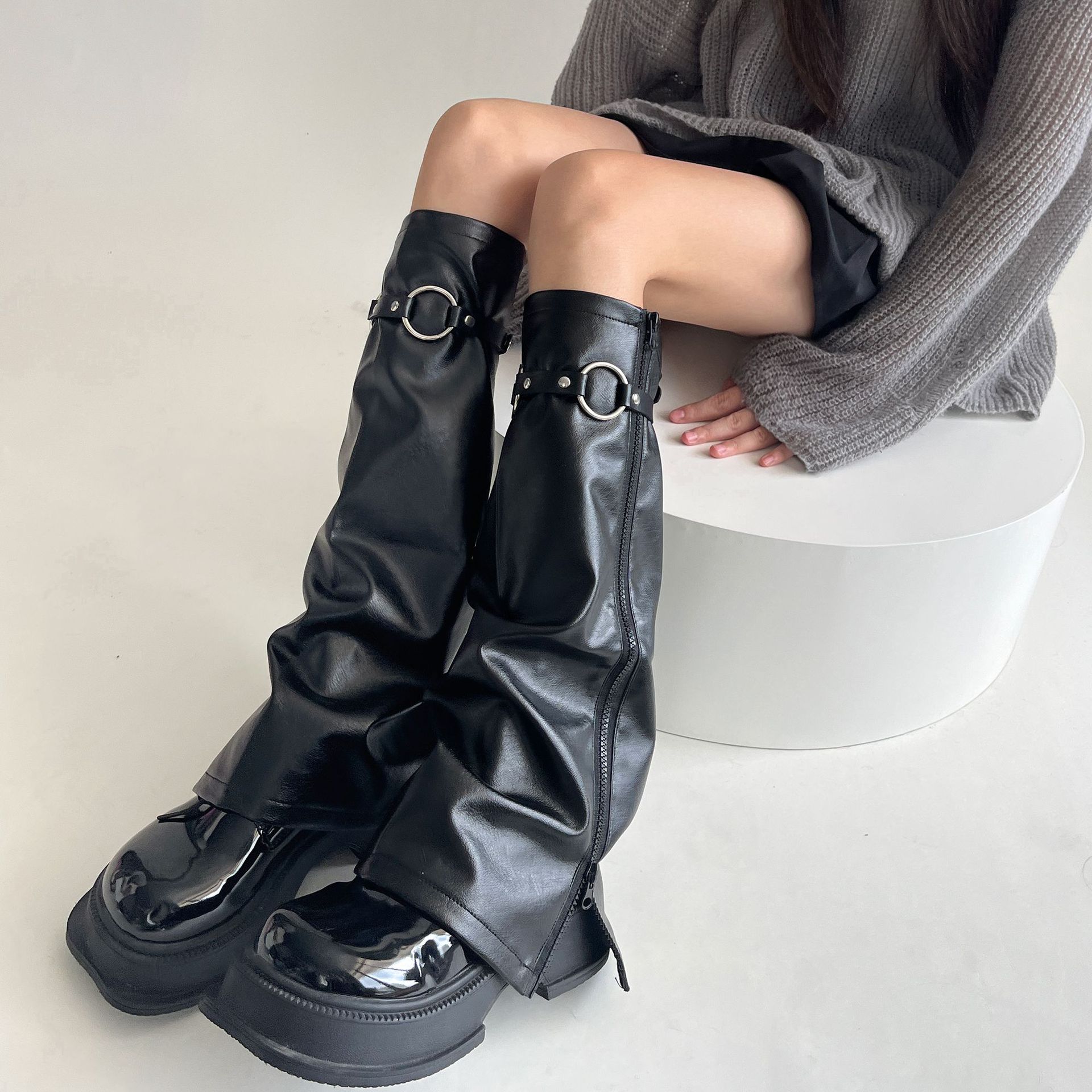 Leg Covers Y2k Hot Girl Harajuku Style Subculture Pile Socks Autumn And Winter Leather Side Zipper Personality Calf Socks
