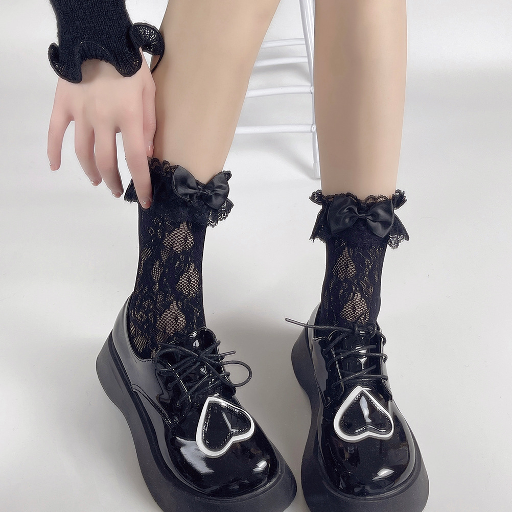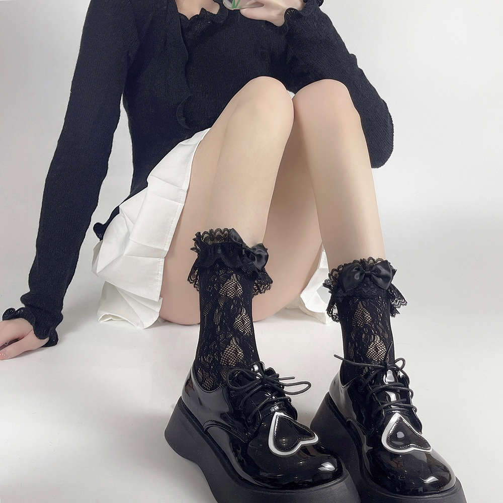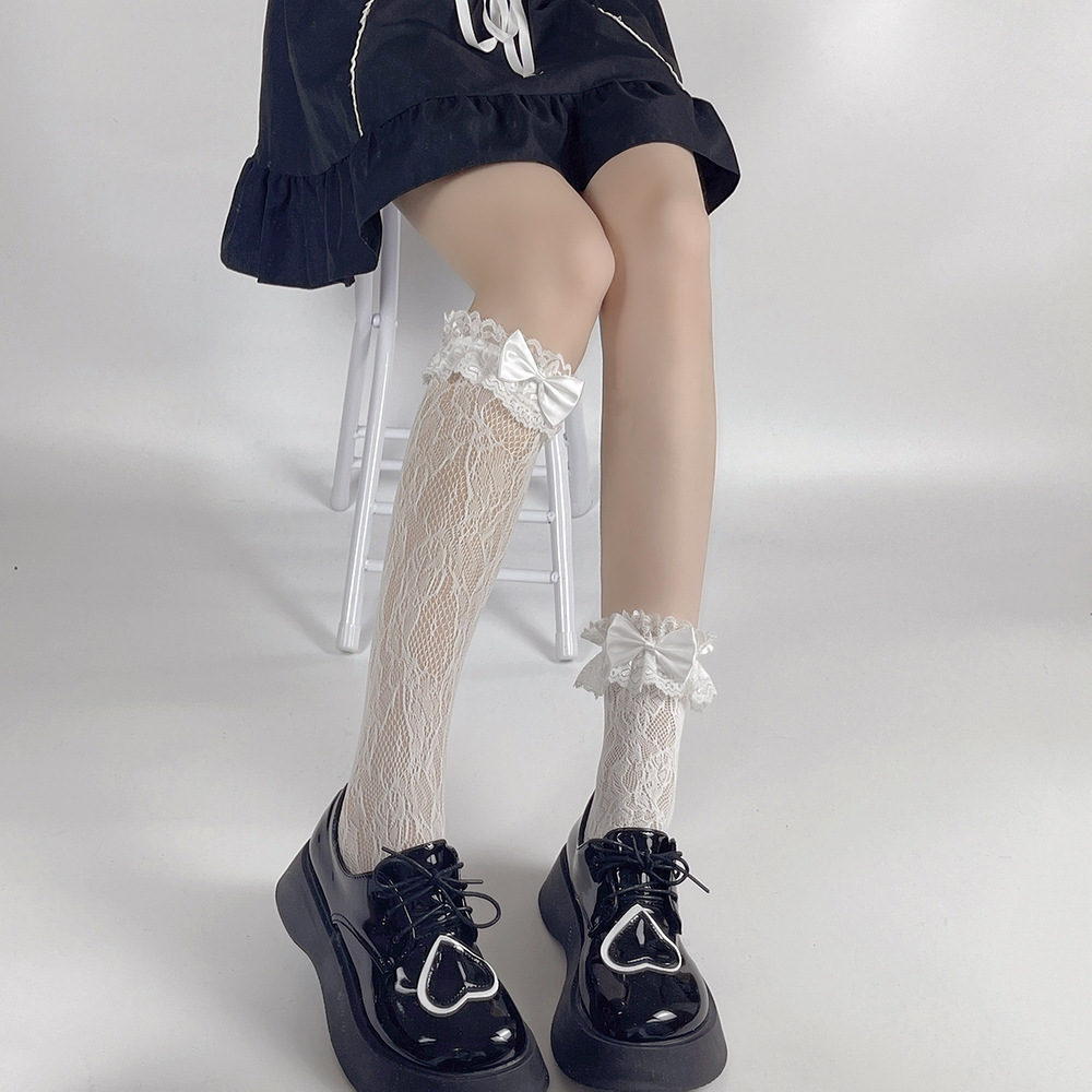 Arrival Sweet Lolita Socks White Bow Socks Summer Thin Half-tube JKLace Lace Calf Socks