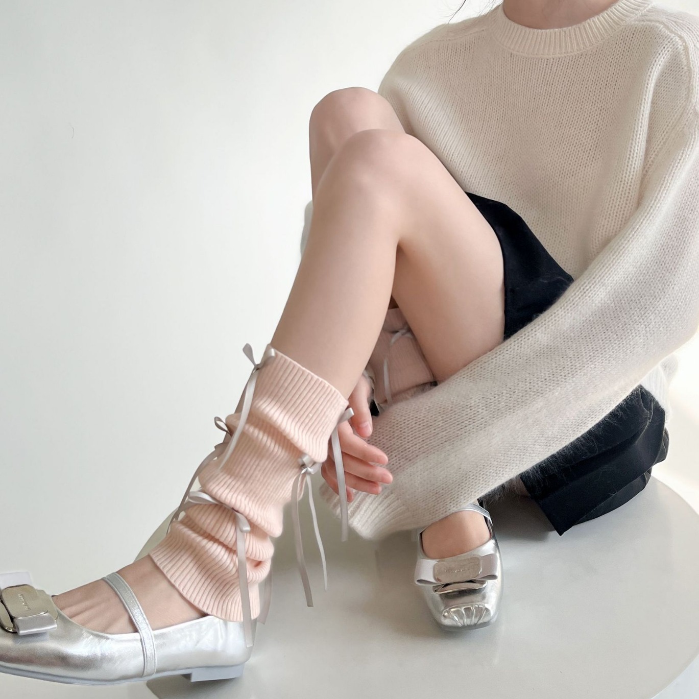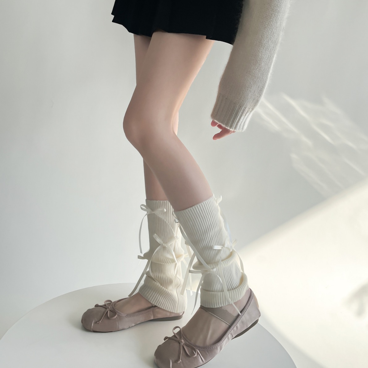 Lazy Ballet Style Sweet Girl Bow Candy Color Pile Socks Spring And Autumn Jk Hot Girl Leg Covers